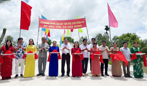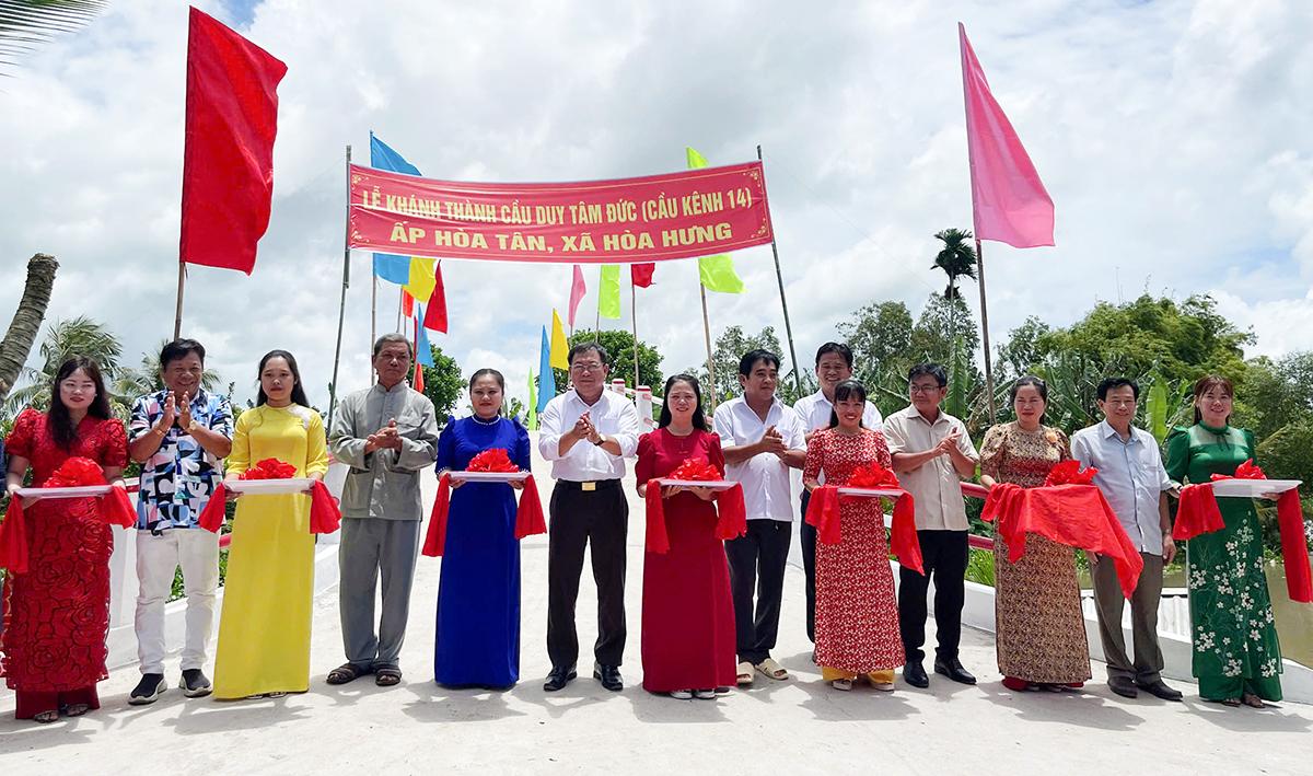 Con đường dẫn vào nơi xây dựng cầu Kênh 14 - Ba Thước (cầu Duy Tâm Đức), ấp Hòa Tân, xã Hòa Hưng hôm khởi công đông vui như ngày hội. Hơn 200 người cùng trộn hồ, chở cát, đổ đá, từ người cao tuổi đến phụ nữ, thanh niên, tất cả đều hăng say. Tiếng cười nói rộn ràng át cả nắng hè. Cầu dài 55m, rộng 3,5m, tải trọng 5 tấn, kinh phí xây dựng 480 triệu đồng, nối liền xã Hòa Hưng (tỉnh An Giang) và xã Vị Thanh 1 (TP. Cần Thơ). Công trình giúp người dân đi lại an toàn, giao thương thuận lợi, mở ra diện mạo mới cho nông thôn vùng ven.
