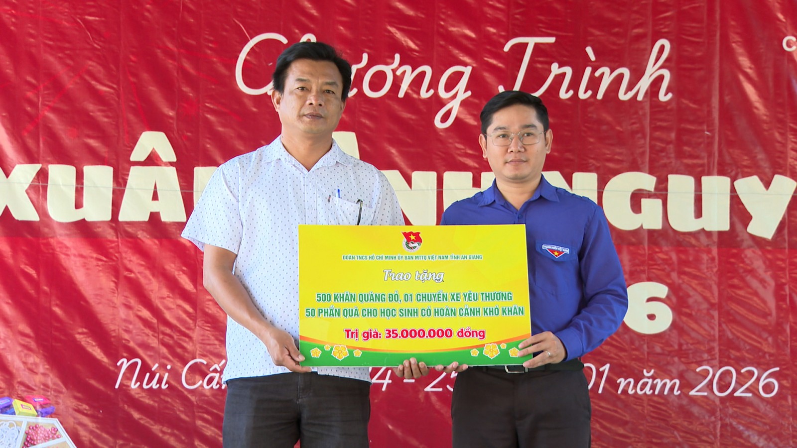 Tại chương trình, ban tổ chức đã trao hỗ trợ cho Trường Tiểu học và Trung học cơ sở Núi Cấm 500 khăn quàng đỏ, 1 chuyến xe yêu thương và 50 phần quà cho học sinh có hoàn cảnh khó khăn, với tổng trị giá 35 triệu đồng.