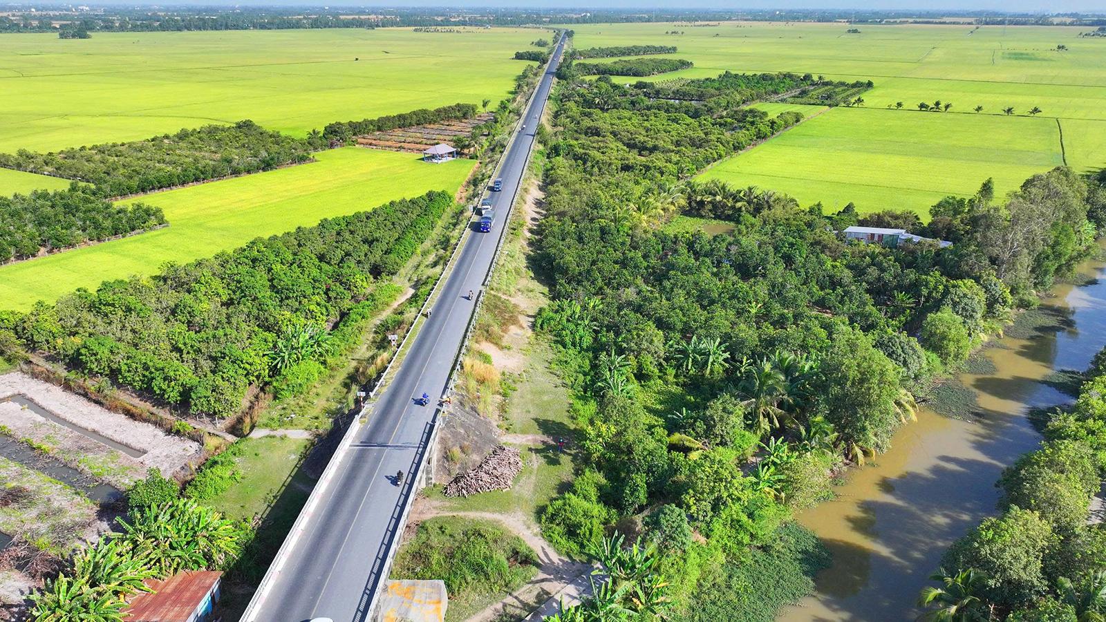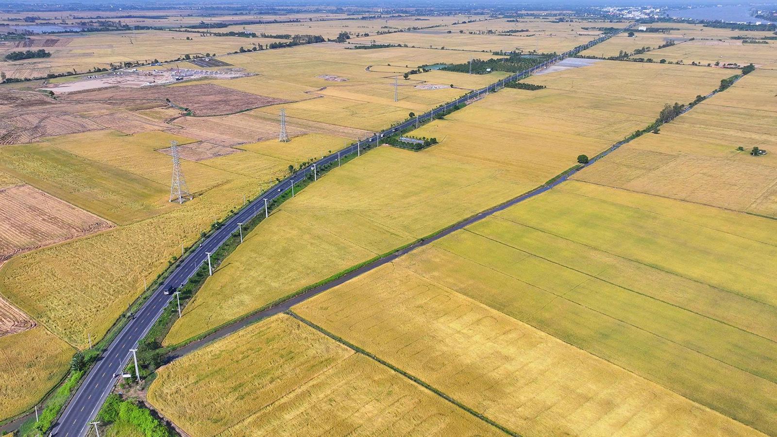Quốc lộ 91 chạy vắt ngang cánh đồng lúa ở phường Châu Đốc và phường Vĩnh Tế. Ảnh: MINH HIỂN