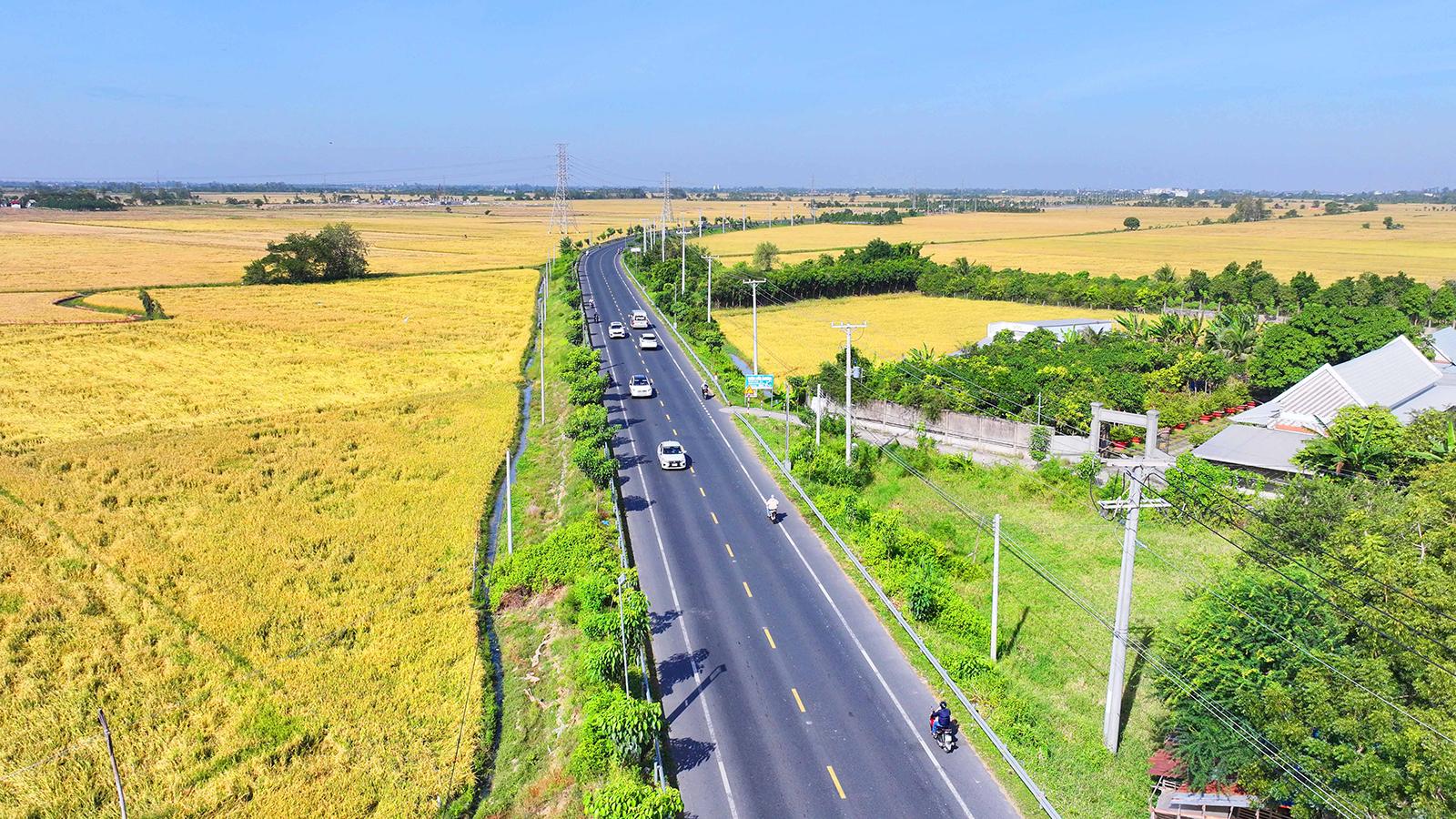 Quốc lộ 91 đoạn đi qua cánh đồng lúa xã Bình Mỹ.