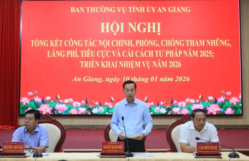 Năm 2025, Ban Thường vụ Tỉnh ủy lãnh đạo, chỉ đạo kịp thời công tác nội chính, phòng, chống tham nhũng, lãng phí, tiêu cực và cải cách tư pháp; tập trung lãnh đạo cấp ủy Đảng, chính quyền, các ngành chức năng triển khai thực hiện và đạt kết quả tích cực trên các mặt.