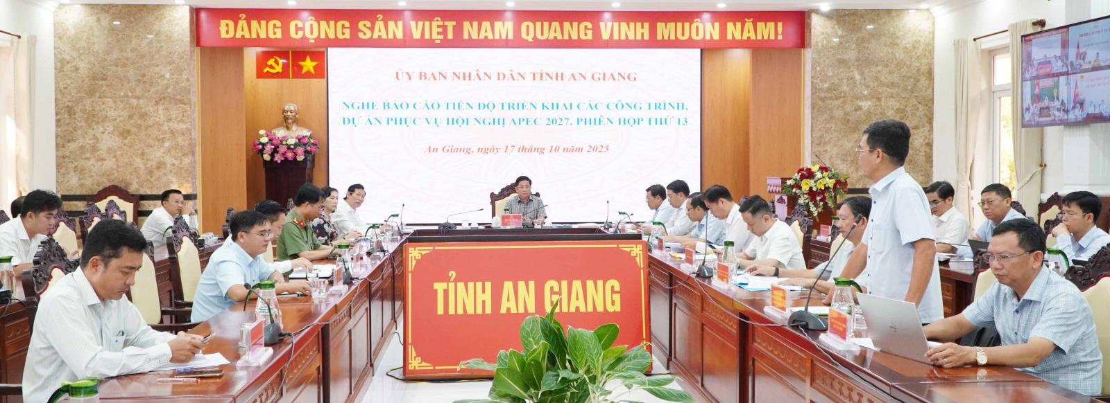 Phát biểu kết luận buổi làm việc, Chủ tịch UBND tỉnh An Giang Hồ Văn Mừng biểu dương tinh thần nỗ lực của các đơn vị trong việc triển khai các dự án phục vụ Hội nghị APEC 2027, nhất là việc chủ động tháo gỡ khó khăn, vướng mắc.
