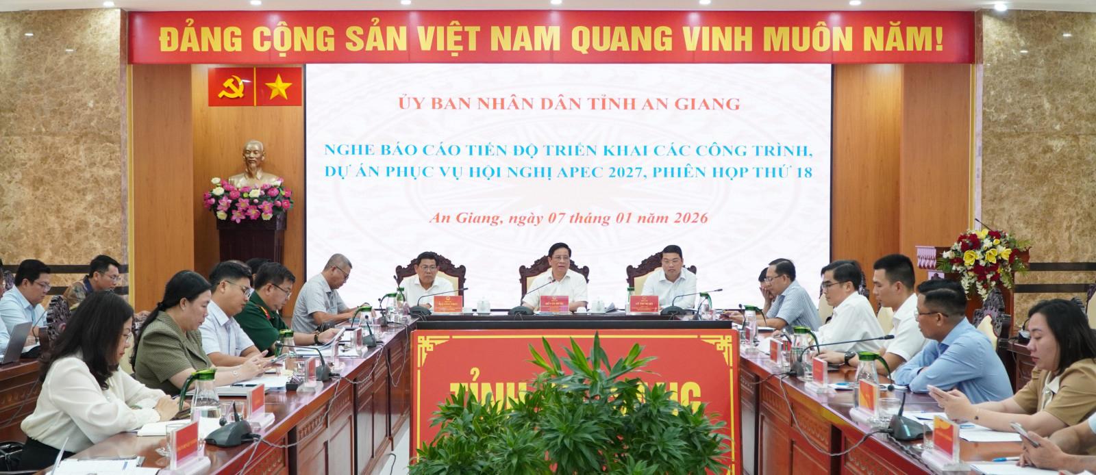 Tại cuộc họp, Chủ tịch UBND tỉnh An Giang Hồ Văn Mừng nghe báo cáo khó khăn, vướng mắc của từng dự án, qua đó chỉ đạo các giải quyết cụ thể. Đồng thời, yêu cầu tập trung triển khai đồng bộ các cơ chế, chính sách, đẩy nhanh công tác thu hồi đất, bồi thường, hỗ trợ, tái định cư, rút ngắn thời gian chuẩn bị mặt bằng và hình thành quỹ đất sạch phục vụ các dự án hạ tầng trọng điểm; đảm bảo nguồn vật liệu xây dựng cho các dự án. Tăng cường điều hành, kiểm tra, giám sát, kịp thời tháo gỡ khó khăn, vướng mắc, vận hành thực chất cơ chế “luồng xanh”, quyết tâm bảo đảm tiến độ thực hiện các dự án phục vụ Hội nghị APEC 2027.