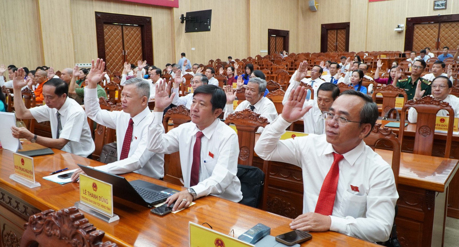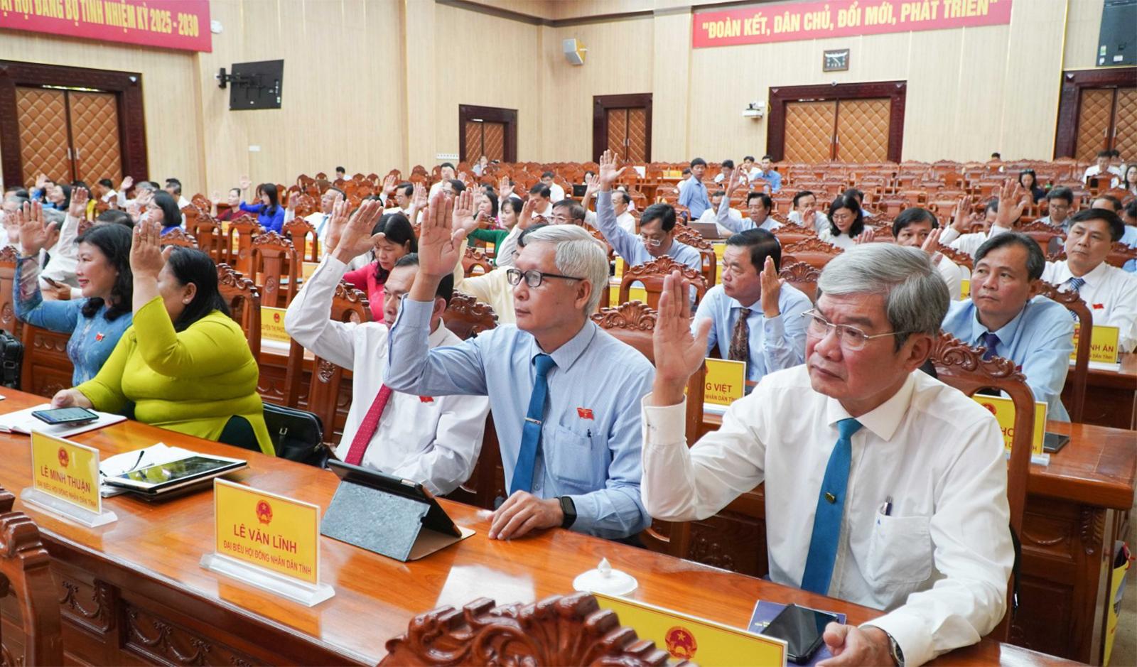 Đại biểu HĐND tỉnh An Giang biểu quyết thông qua chương trình Kỳ họp thứ 9.