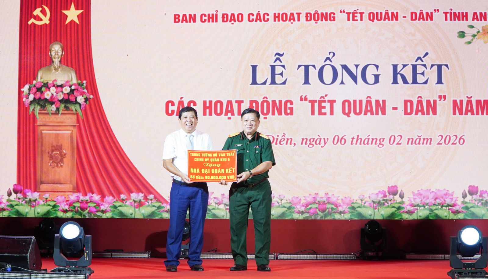Dịp này, Trung tướng Hồ Văn Thái, Chính ủy Quân khu 9 tặng 1 căn nhà Đại đoàn kết cho UBND xã Thạnh Lộc; tặng 10 phần quà cho các sĩ quan, quân nhân chuyên nghiệp, lực lượng vũ trang tỉnh An Giang có hoàn cảnh khó khăn.