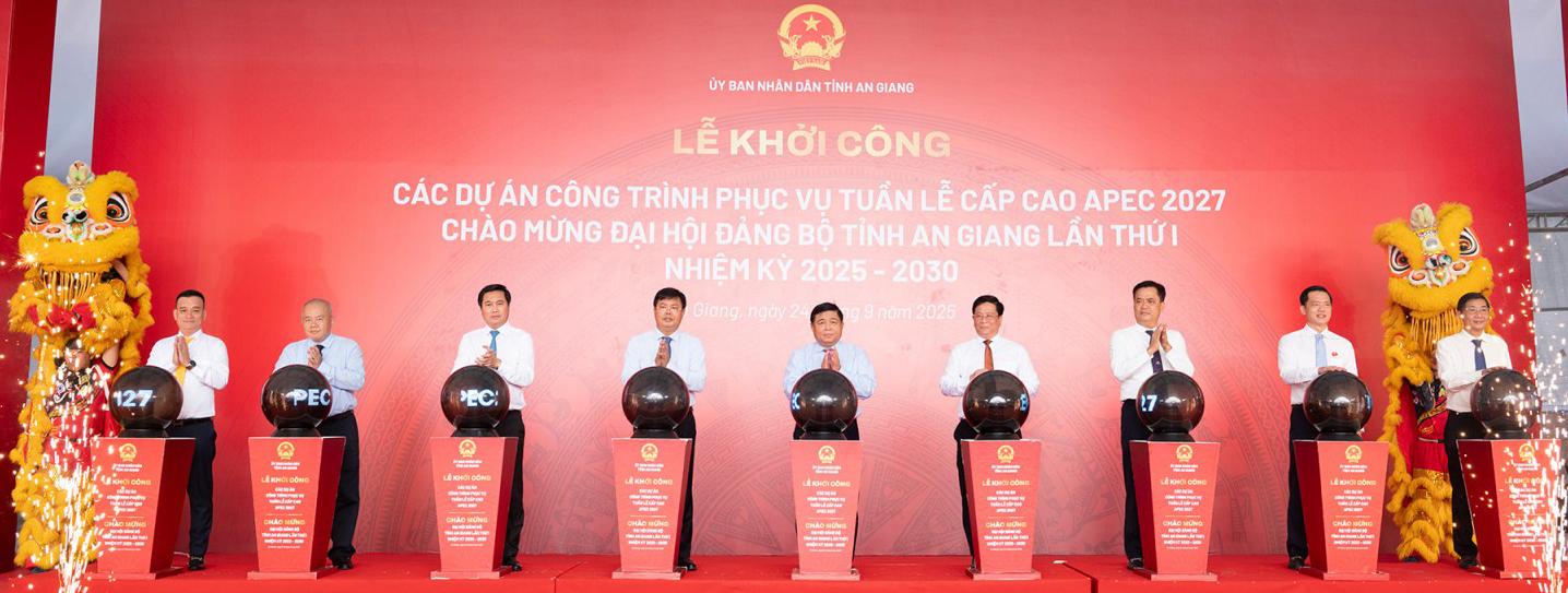 Sáng 24/9, tại đặc khu Phú Quốc, UBND tỉnh An Giang Lễ khởi công, khởi động các dự án phục vụ Tuần lễ cấp cao APEC 2027, chào mừng Đại hội Đảng bộ tỉnh An Giang lần thứ I, nhiệm kỳ 2025 - 2030, tiến tới Đại hội Đảng toàn quốc lần thứ XIV.