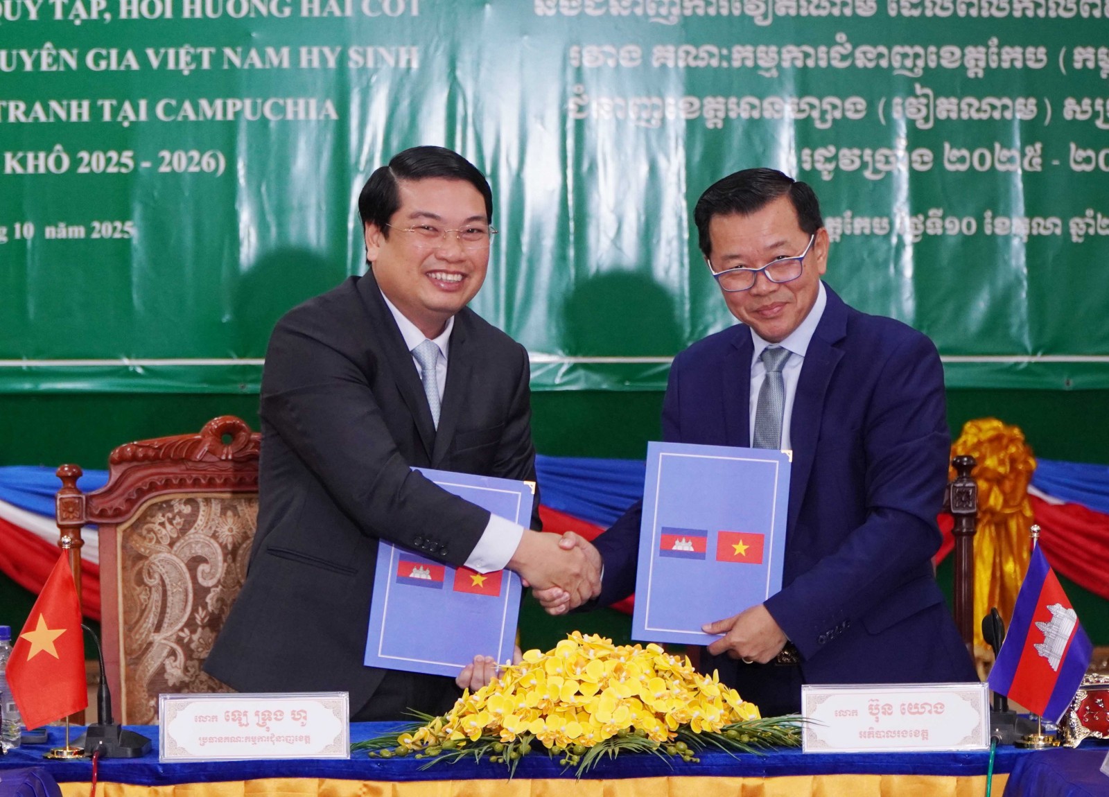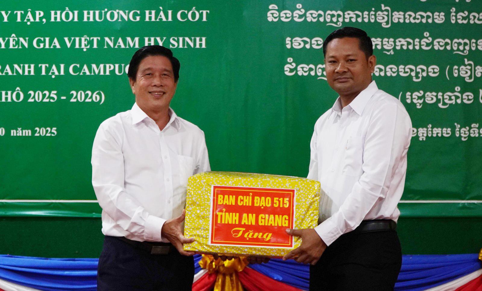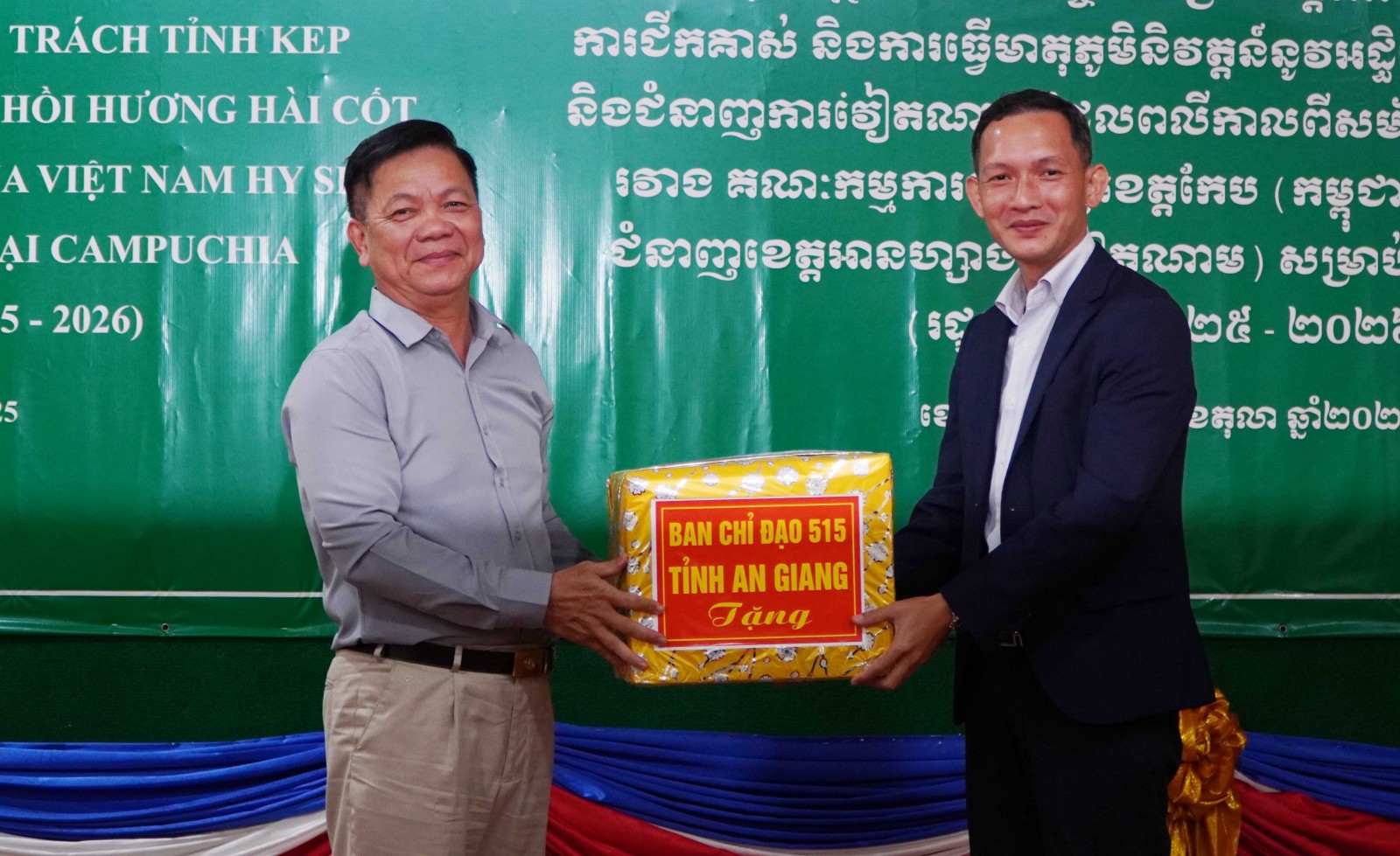Dịp này, Ban Chuyên trách tỉnh An Giang được ủy quyền của Ban Chuyên trách Chính phủ Việt Nam trao kinh phí hỗ trợ Ban Chuyên trách tỉnh Kep trong phối hợp tổ chức các hoạt động giúp Đội K92 tìm kiếm, quy tập hài cốt liệt sĩ quân tình nguyện và chuyên gia Việt Nam hy sinh trong các thời kỳ chiến tranh tại Campuchia trên địa bàn tỉnh mùa khô 2025 - 2026.