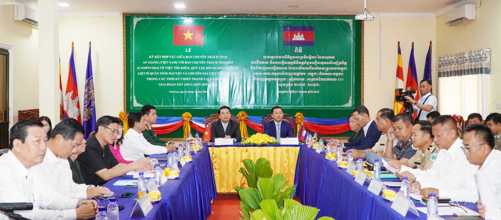 Từ ngày 6 đến 10/10, Ban Chuyên trách tỉnh An Giang tiến hành ký kết hợp tác tìm kiếm, quy tập, hồi hương hài cốt liệt sĩ quân tình nguyện và chuyên gia Việt Nam hy sinh trong các thời kỳ chiến tranh tại Campuchia, giai đoạn XXV (mùa khô 2025 - 2026) với Ban Chuyên trách 6 tỉnh: Koh Kong, Kampong Speu, Preah Sihanouk, Takeo, Kampot, Kep (Vương quốc Campuchia).