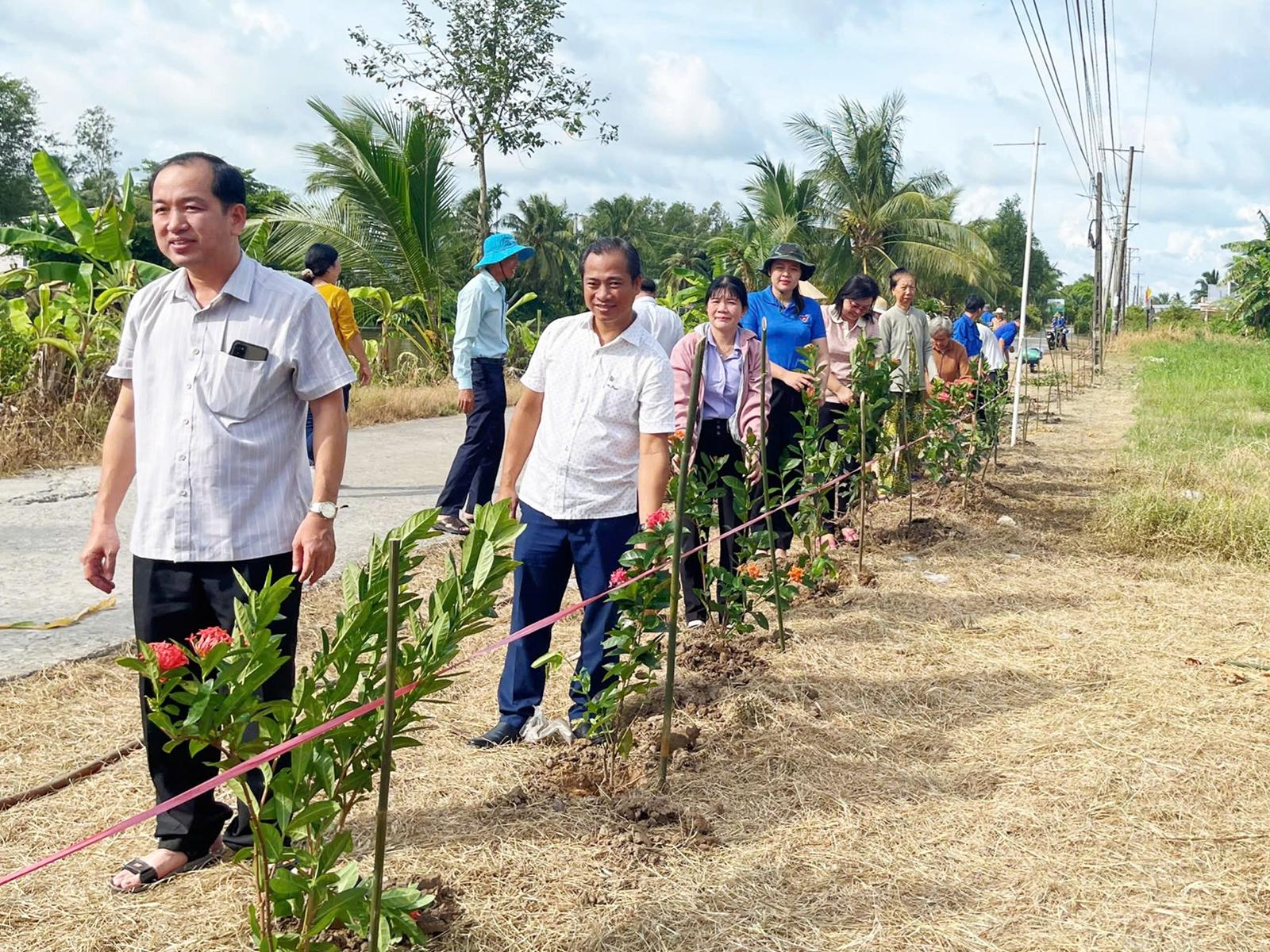 Công trình tuyến đường hoa do Ủy ban Mặt trận Tổ quốc Việt Nam xã Tân Hiệp và các tổ chức chính trị - xã hội thực hiện. Ảnh: THU OANH