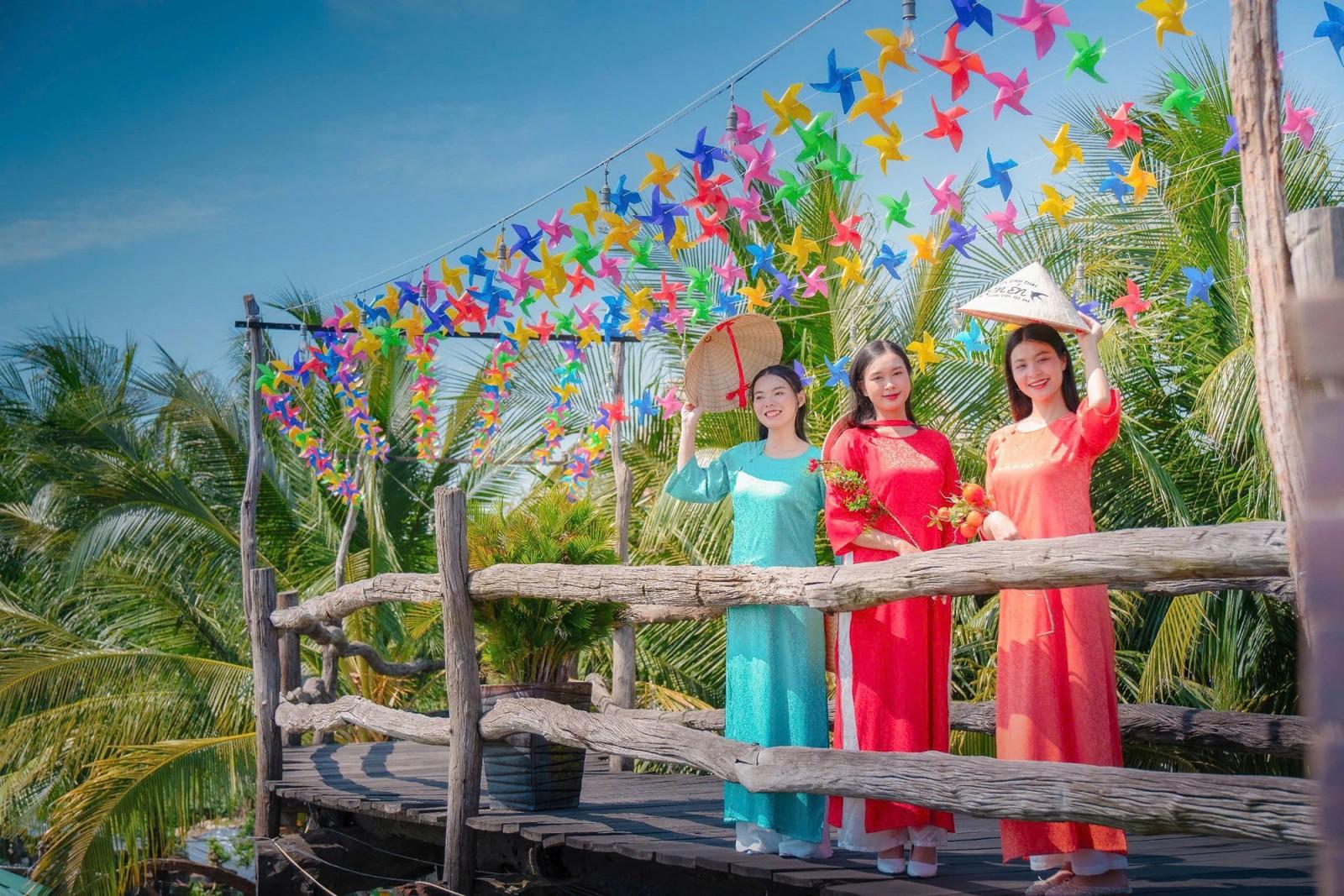Du khách check-in tại điểm du lịch sinh thái Mỹ Luông.