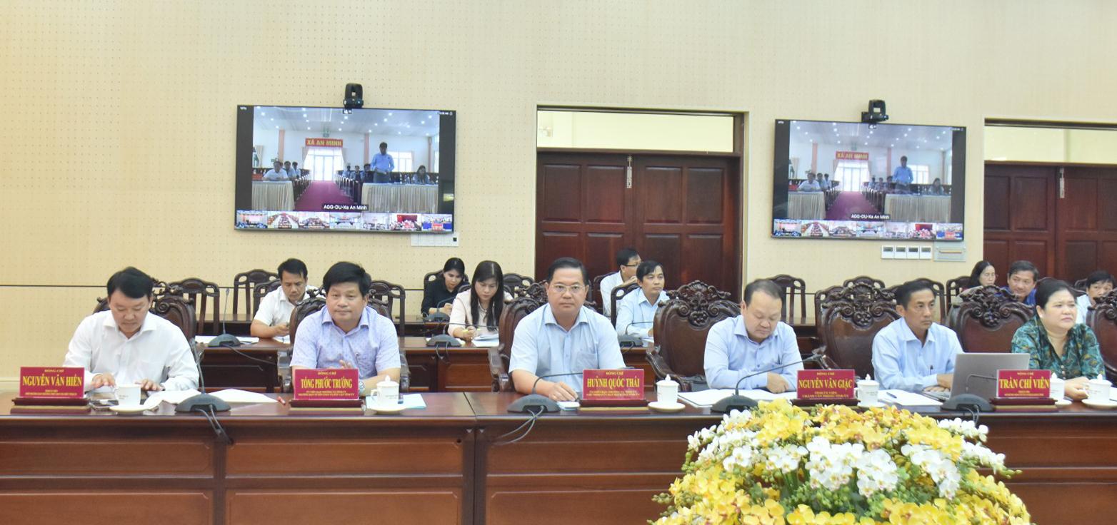 Ủy viên Ban Chấp hành Trung ương Đảng, Bí thư Tỉnh ủy An Giang Nguyễn Tiến Hải (giữa) chủ trì hội nghị.
