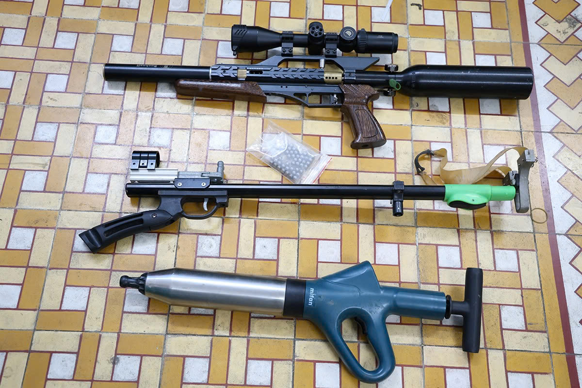 Qua kiểm tra, Công an phường phát hiện và thu giữ 3 bọc nylon bên trong có chứa tinh thể màu trắng nghi là ma túy, 1 khẩu súng hơi, 1 cây nã cùng nhiều đồ vật liên quan.