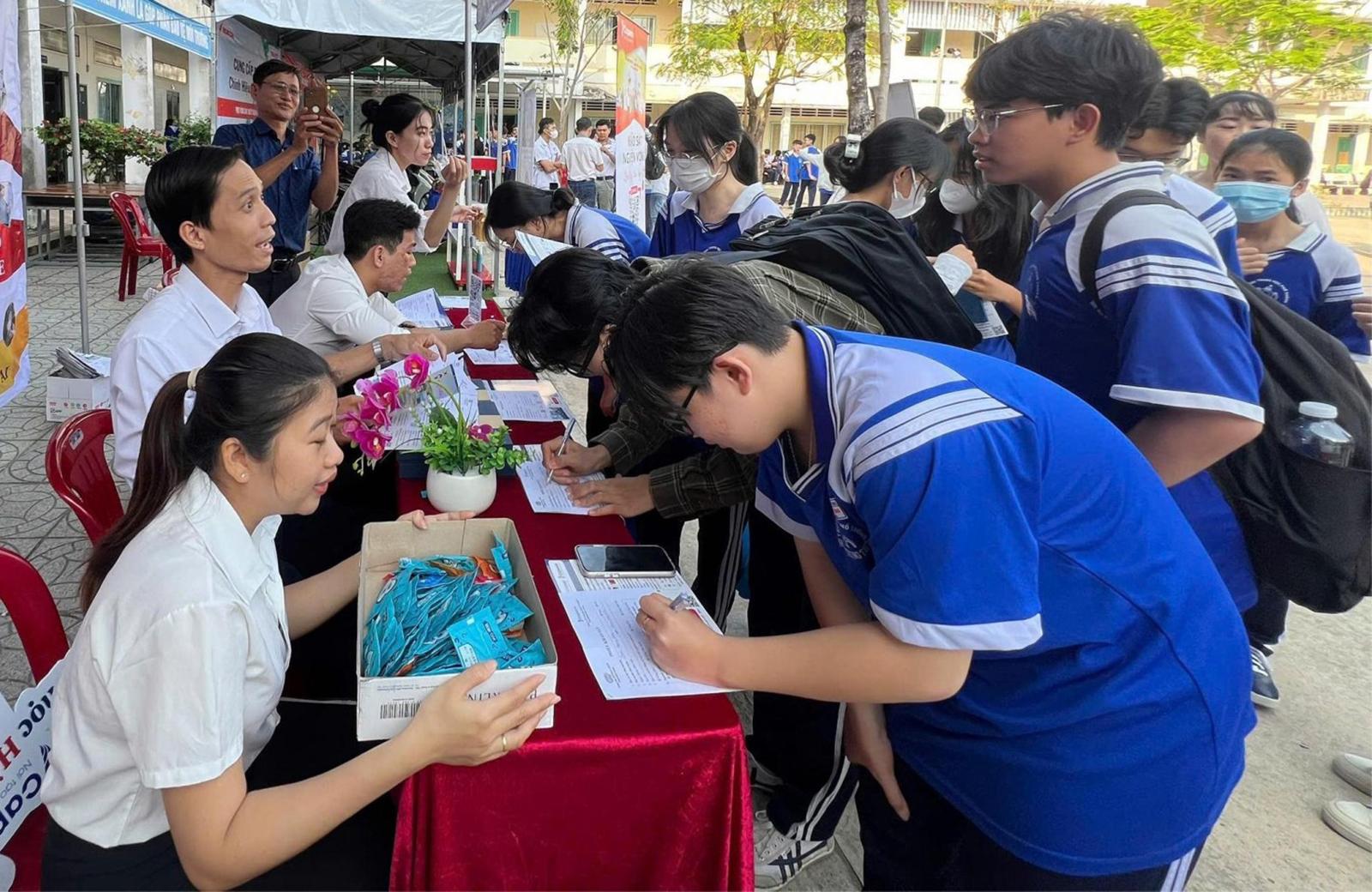 Học sinh Trường THPT Nguyễn Trung Trực tham gia chương trình tư vấn du học do Công ty Cổ phần Giáo dục Quốc tế Capeco chi nhánh Kiên Giang tổ chức.