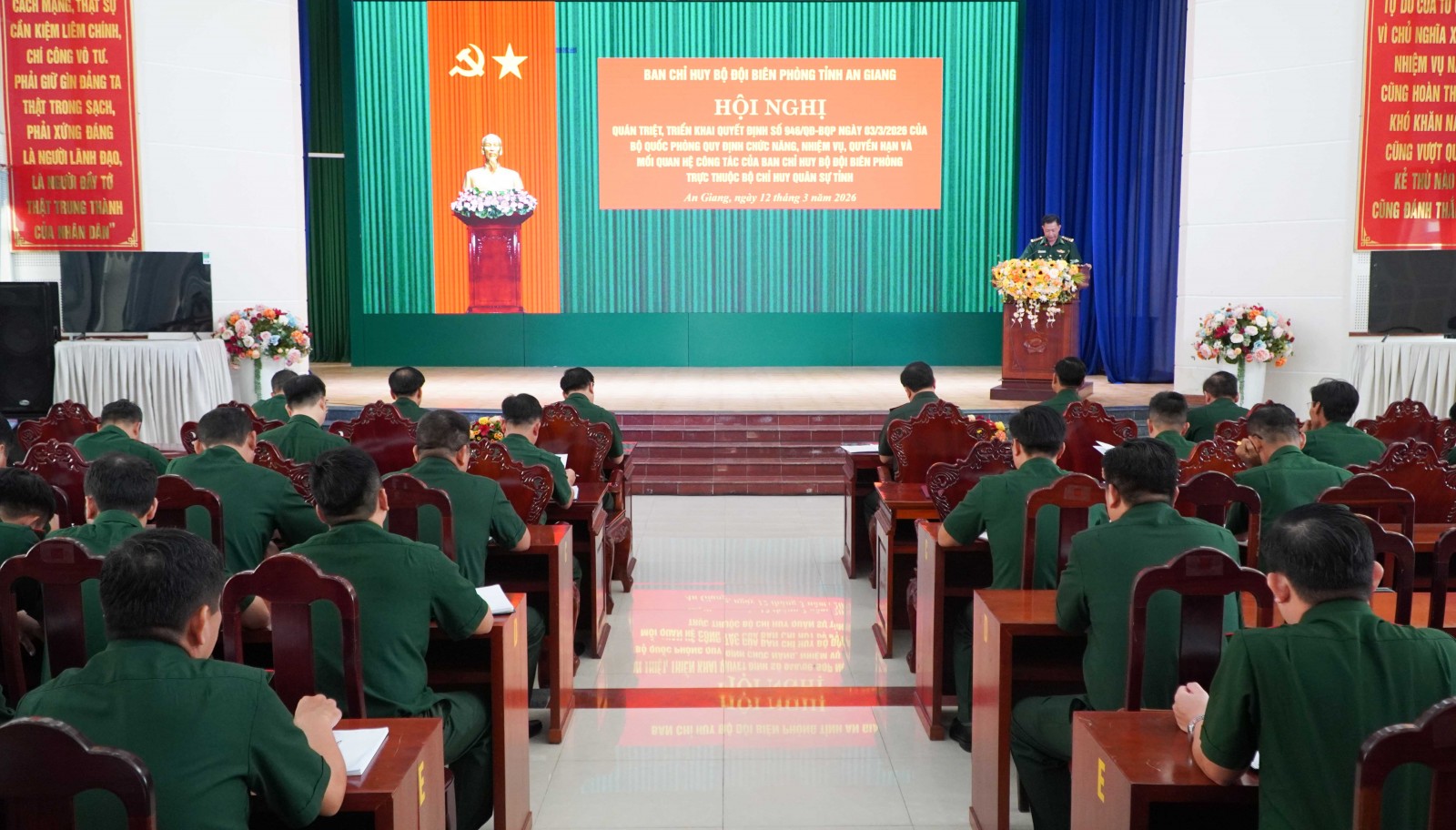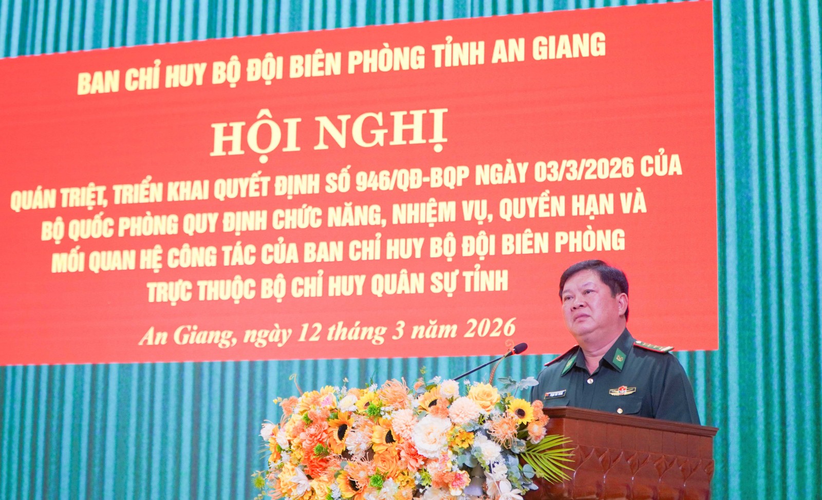 Đại tá Phạm Văn Thắng, Phó Chỉ huy trưởng Bộ Chỉ huy Quân sự tỉnh kiêm Chỉ huy trưởng Ban Chỉ huy Bộ đội Biên phòng tỉnh An Giang khẳng định Quyết định số 946/QĐ-BQP ngày 3/3/2026 của Bộ Quốc phòng có ý nghĩa hết sức quan trọng, là hành lang pháp lý để Ban Chỉ huy Bộ đội Biên phòng tỉnh thực hiện chức năng, nhiệm vụ, quyền hạn và mối quan hệ công tác của mình.