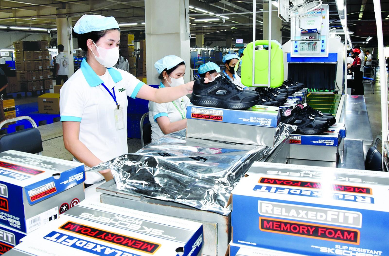Sản xuất giày da xuất khẩu tại Công ty Cổ phần Thái Bình Kiên Giang, khu công nghiệp Thạnh Lộc. Ảnh: KIỀU DIỄM