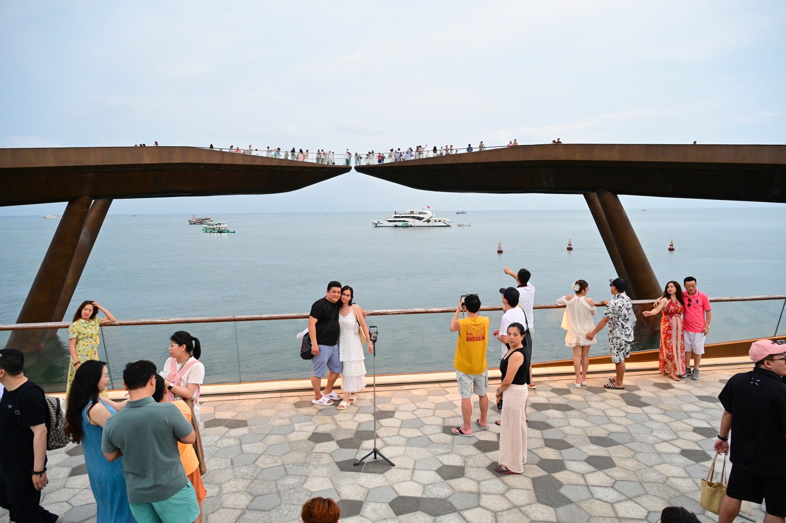 Du khách check-in tại cầu Hôn Phú Quốc. Ảnh: NGUYỄN MINH