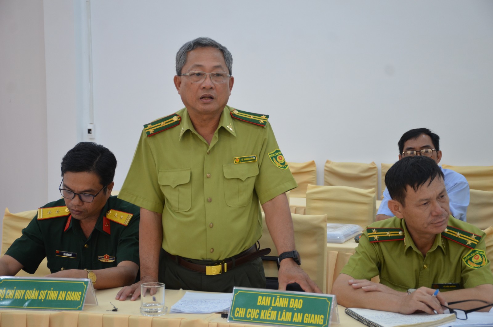 Phó Chi cục Trưởng Chi cục Kiểm lâm tỉnh An Giang Lê Thành Công đóng góp phương án phòng cháy, chữa cháy của đơn vị chủ rừng.