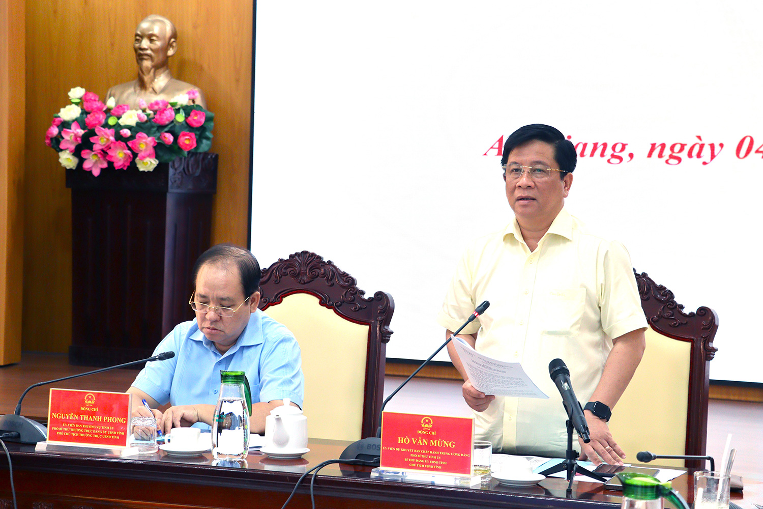 Chủ tịch UBND tỉnh An Giang Hồ Văn Mừng phát biểu chỉ đạo cuộc họp.