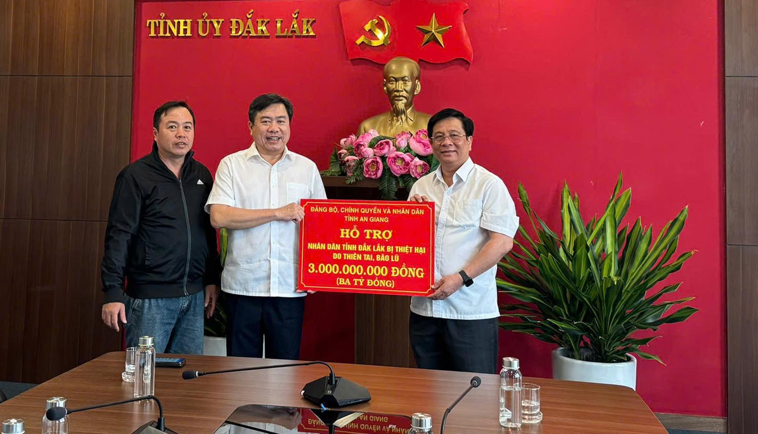 Ngoài hỗ trợ tỉnh Khánh Hòa, đợt này tỉnh An Giang cũng hỗ trợ tỉnh Đắk Lắk 3 tỷ đồng, tỉnh Gia Lai 2 tỷ đồng và tỉnh Lâm Đồng 2 tỷ đồng.