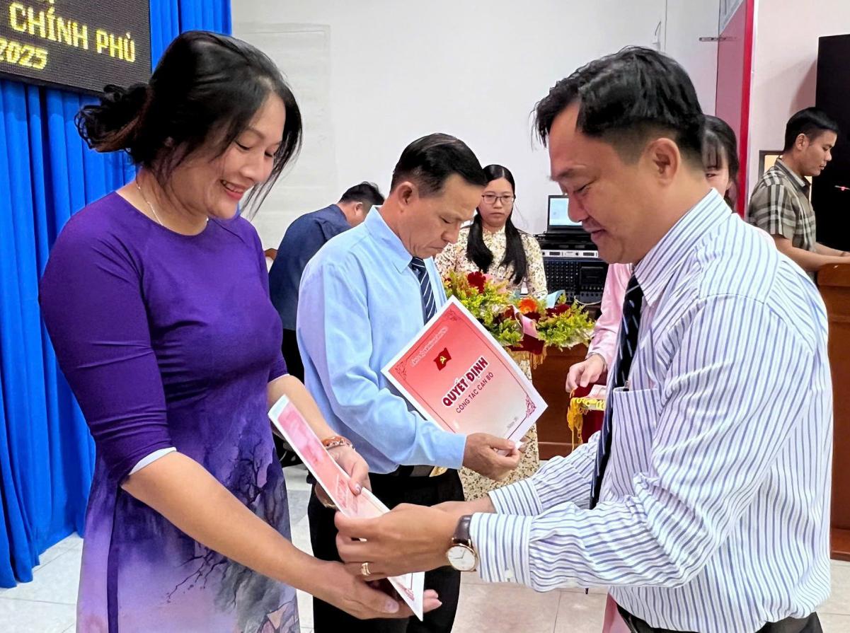 Chủ tịch UBND phường Tịnh Biên Trần Hiếu Thuận trao quyết định cán bộ.