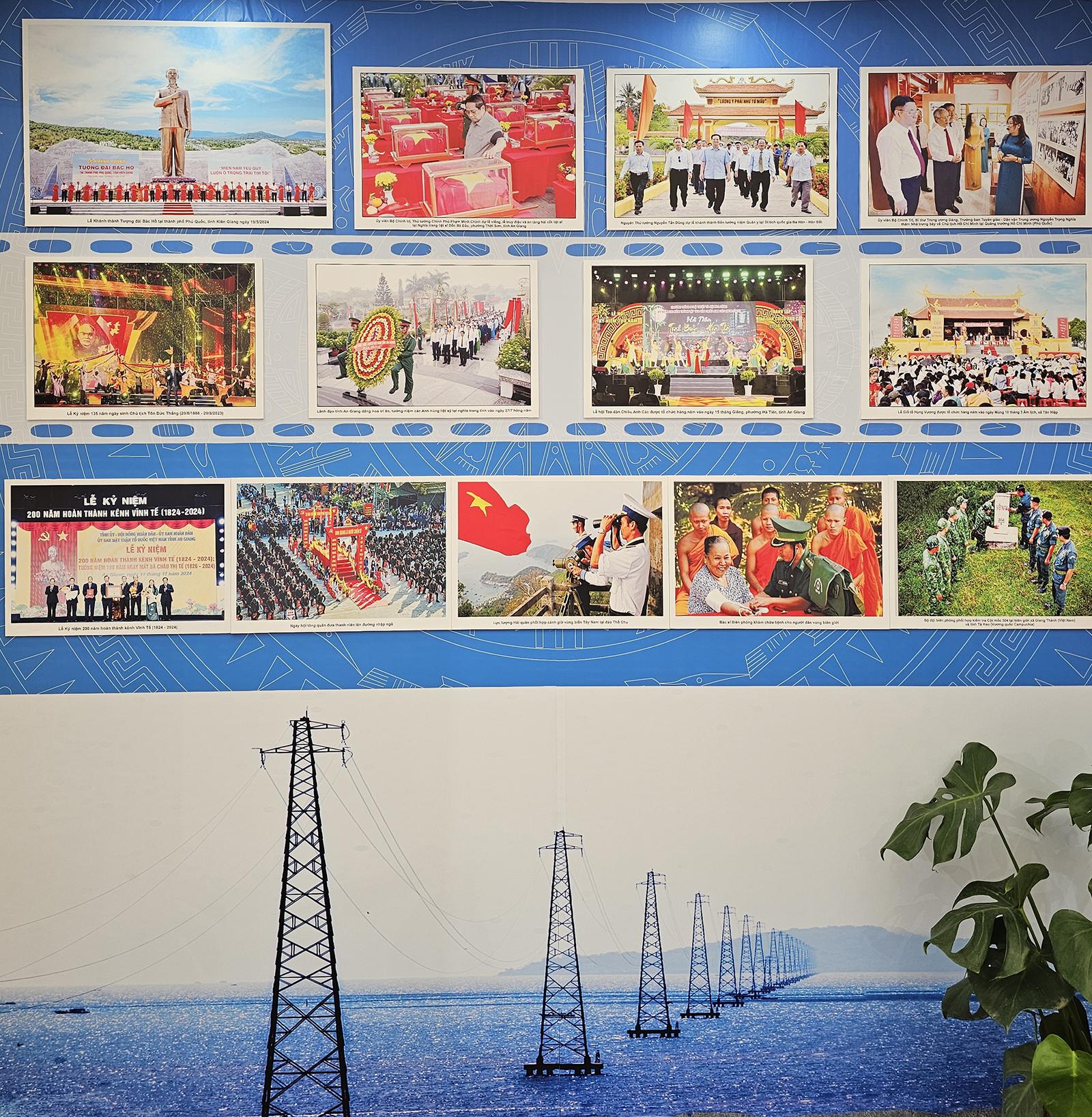 Những hình ảnh về truyền thống cách mạng, lễ hội văn hóa và các sự kiện chính trị quan trọng của An Giang, song hành cùng công trình hiện đại như đường điện vượt biển ra đảo, thể hiện sự kết nối và khát vọng vươn xa của địa phương.