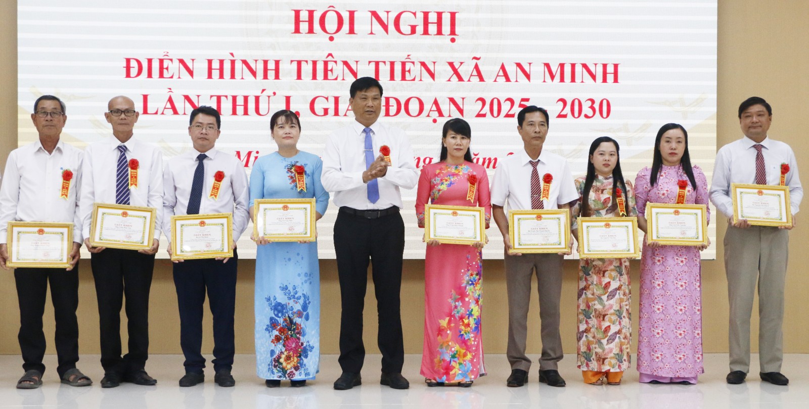 Từ những phong trào trên đã xuất hiện nhiều mô hình tốt, tập thể, cá nhân điển hình tiên tiến trong các lĩnh vực sản xuất, kinh doanh, học tập và công tác. 5 năm qua, toàn xã An Minh có 7 tập thể và 50 cá nhân là những điển hình tiên tiến tiêu biểu trong phong trào thi đua yêu nước giai đoạn 2020 - 2025 được biểu dương, khen thưởng.