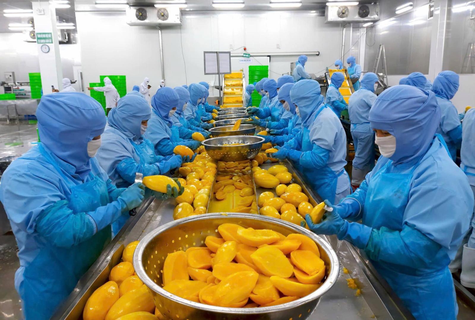 Chế biến xoài xuất khẩu tại nhà máy Mỹ An (Antesco). Ảnh: HẠNH CHÂU
