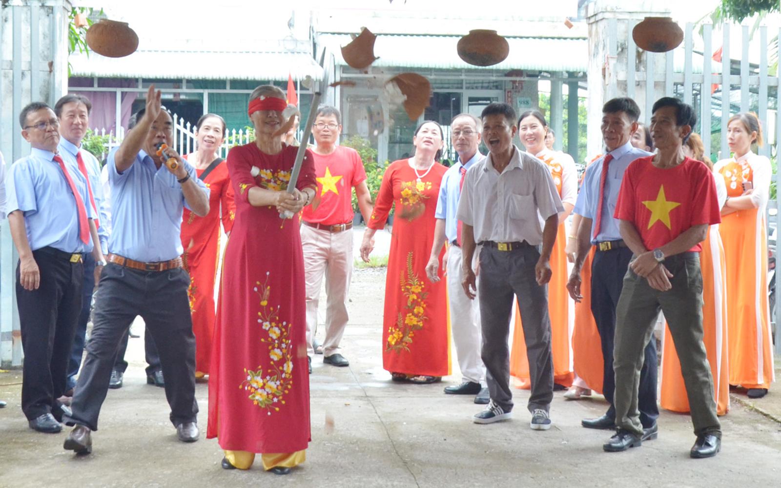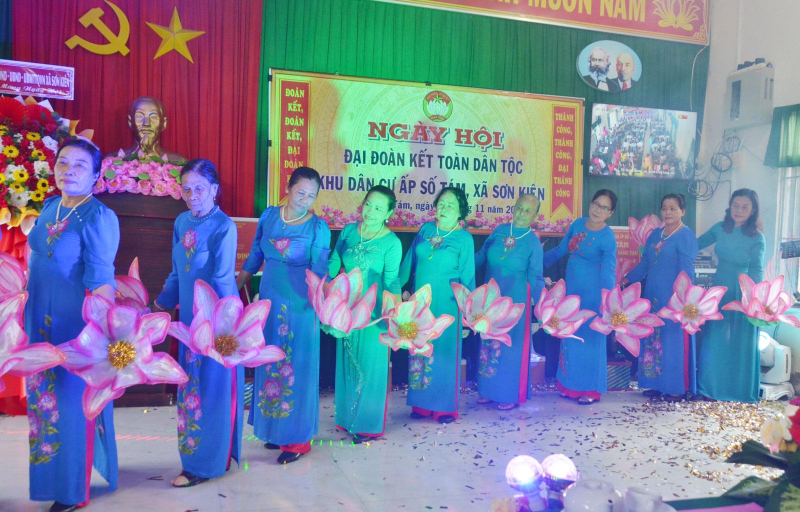 Ấp Số Tám, xã Sơn Kiên tổ chức các hoạt động văn nghệ, trò chơi tại Ngày hội đại đoàn kết toàn dân tộc.