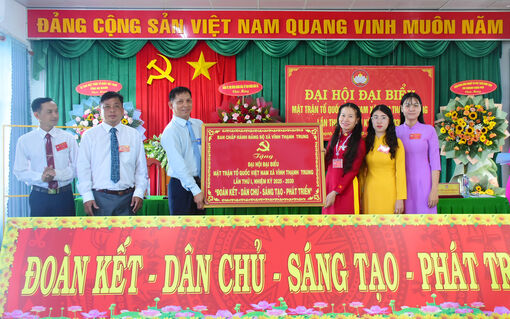 Đảng ủy xã Vĩnh Thạnh Trung tặng bức trướng chúc mừng đại hội.