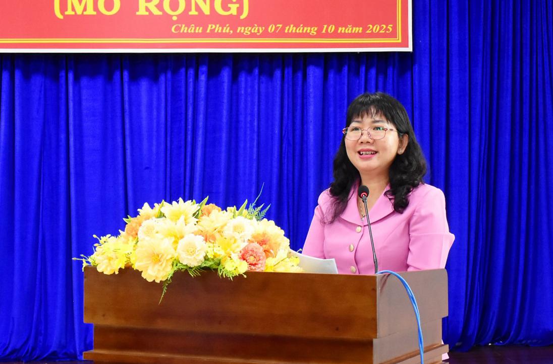 Phát biểu tại hội nghị, Bí thư Đảng ủy, Chủ tịch HĐND xã Châu Phú Thi Hồng Thúy đề nghị các chi, đảng bộ đẩy mạnh công tác xây dựng, chỉnh đốn Đảng, nâng cao sức chiến đấu của tổ chức Đảng và đảng viên; khẩn trương xây dựng chương trình, kế hoạch 5 năm thực hiện nghị quyết Đại hội đại biểu Đảng bộ xã lần thứ I, nhiệm kỳ 2025 - 2030, xác định cụ thể nội dung, lộ trình, chỉ tiêu thực hiện từng năm, đảm bảo đạt các chỉ tiêu đã đề ra trong nhiệm kỳ.