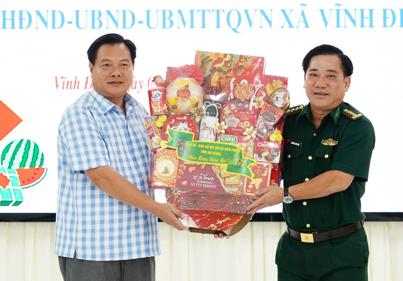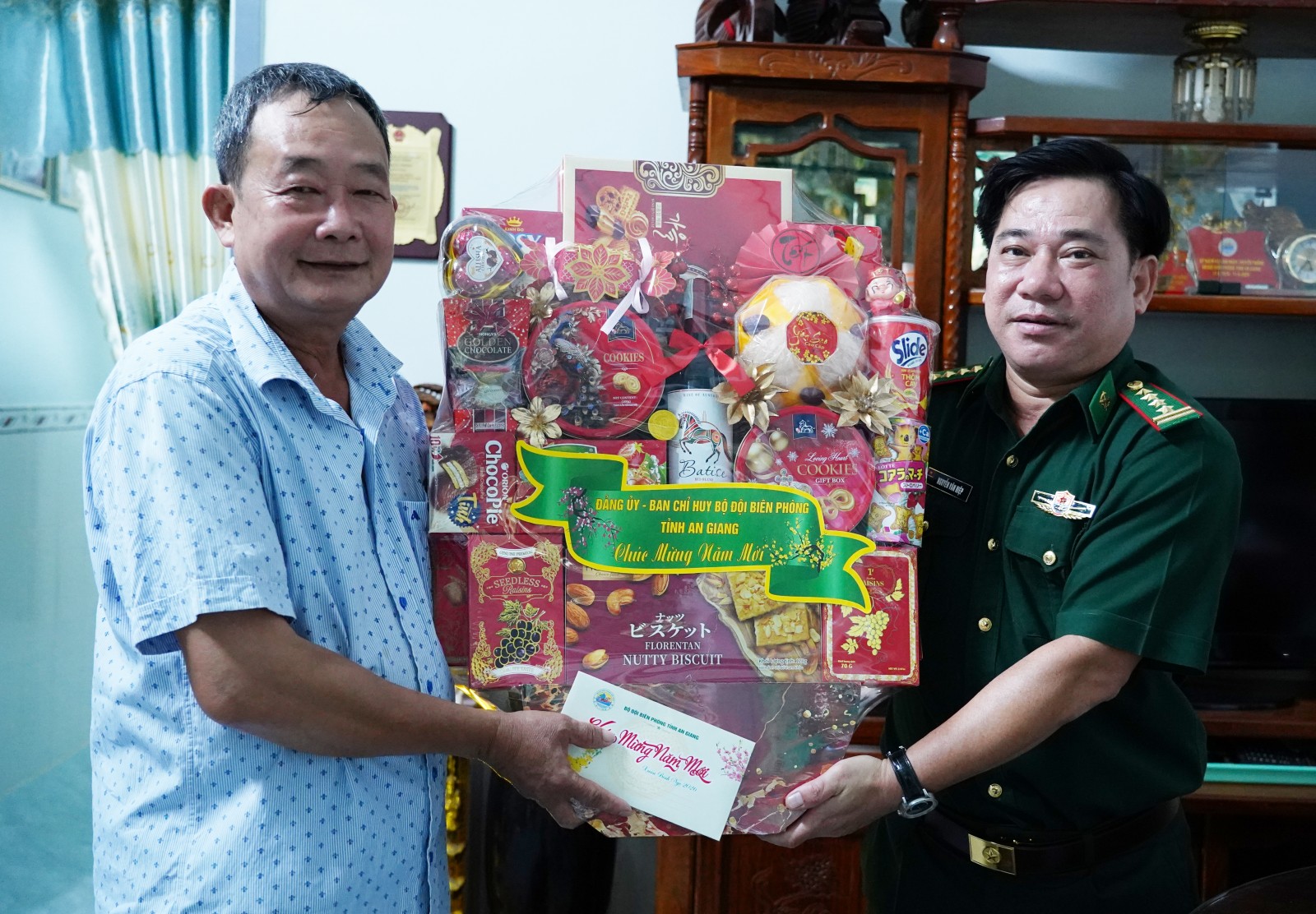 Chúc tết, tặng quà chính quyền các địa phương, Đại tá Nguyễn Văn Hiệp phấn khởi thông tin trong năm 2025, đơn vị hoàn thành tốt mọi nhiệm vụ; cùng các lực lượng, chính quyền địa phương xây dựng và bảo vệ vững chắc chủ quyền, toàn vẹn lãnh thổ; làm tốt công tác phòng, chống khai thác IUU, tội phạm ma túy, buôn lậu, xuất nhập cảnh trái phép, hàng gian, hàng giả; đời sống đồng bào các dân tộc khu vực biên giới, biển, đảo được nâng lên...