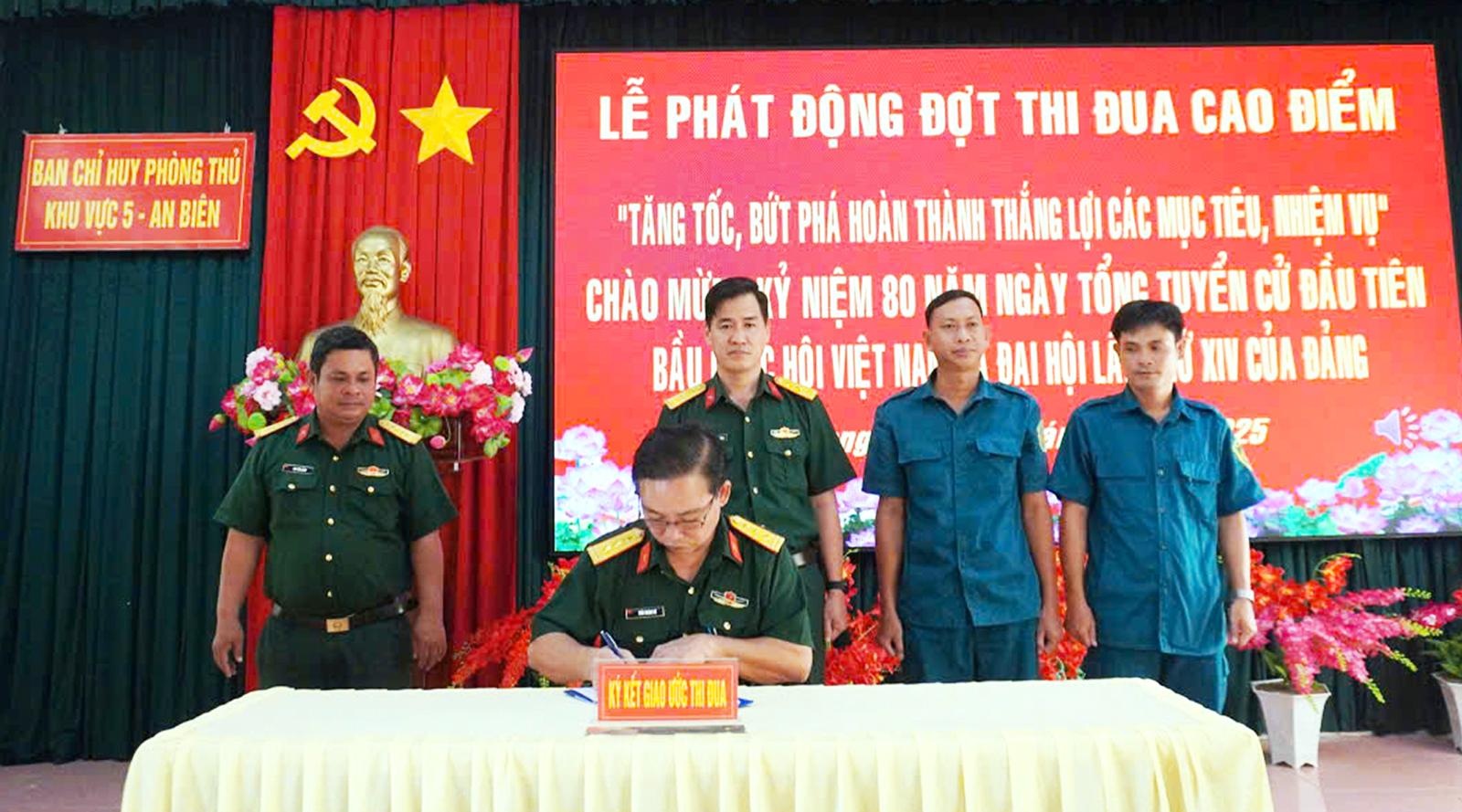 Phát động đợt thi đua, Thượng tá Trần Hoàng Vũ, Phó Chính ủy Ban Chỉ huy phòng thủ Khu vực 5 - An Biên yêu cầu cấp ủy, chỉ huy các cấp tập trung đẩy mạnh công tác tuyên truyền, giáo dục; nâng cao bản lĩnh chính trị cho cán bộ, chiến sĩ; nêu cao tinh thần trách nhiệm, khắc phục khó khăn, sẵn sàng nhận và hoàn thành tốt mọi nhiệm vụ, góp phần đảm bảo an ninh trật tự, phục vụ phát triển kinh tế - xã hội.