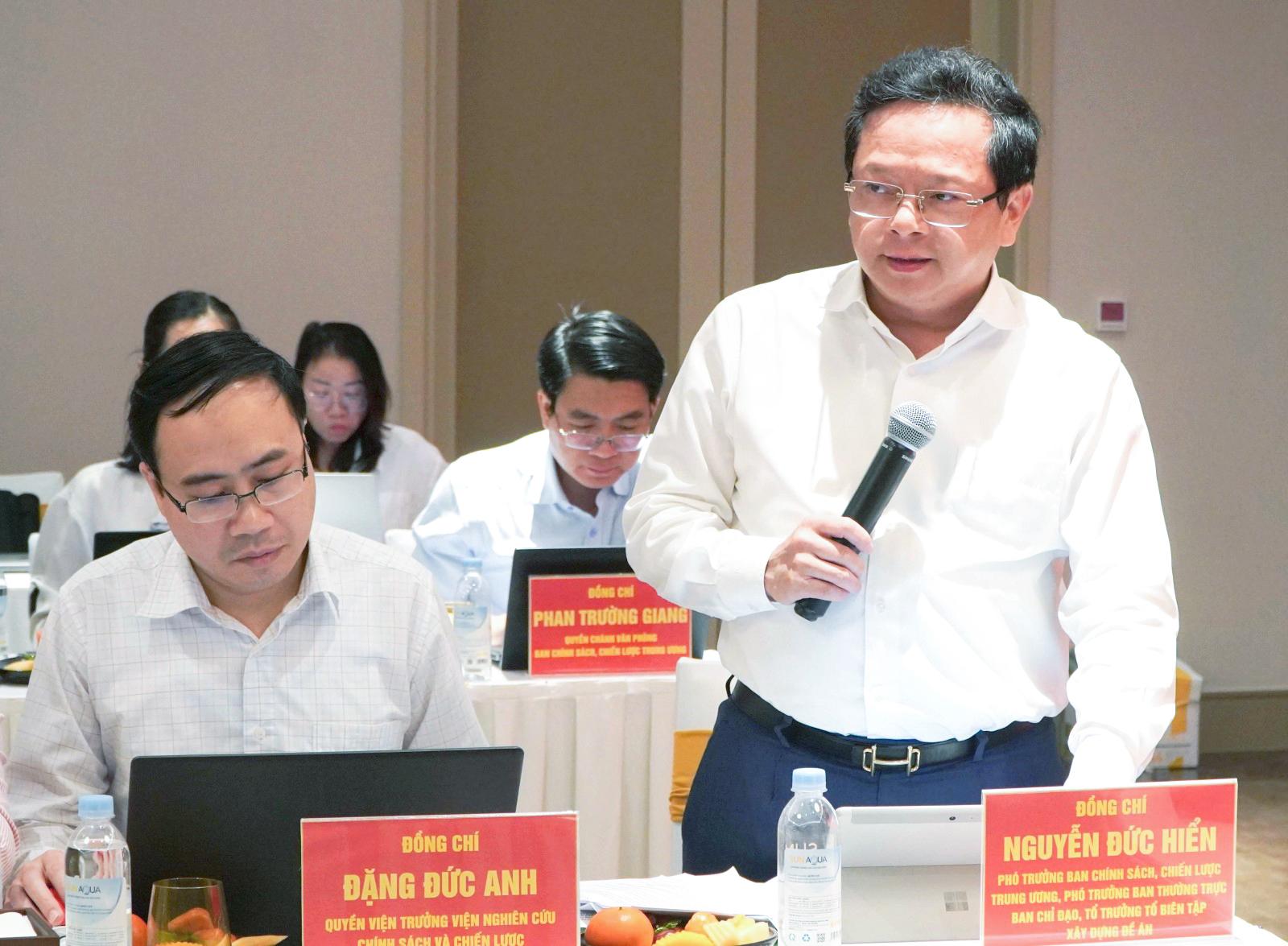 Phó trưởng Ban Chính sách, Chiến lược Trung ương Nguyễn Đức Hiển phát biểu tại buổi làm việc.