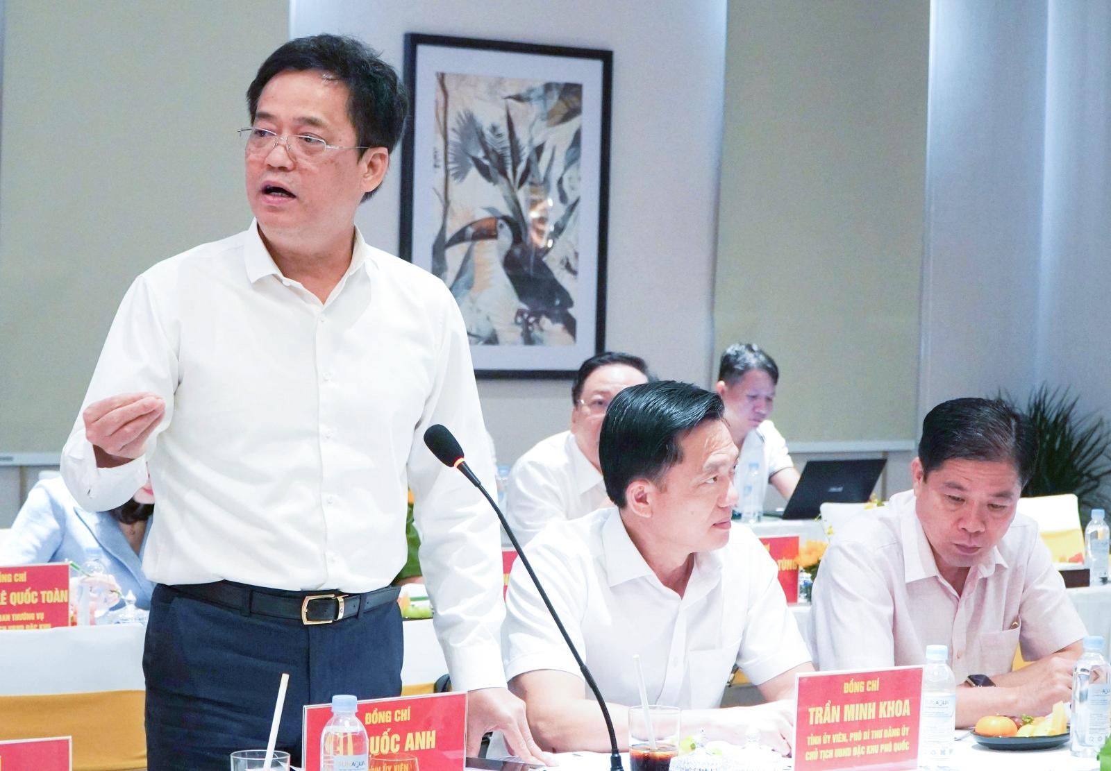 Bí thư Đảng ủy đặc khu Phú Quốc Lê Quốc Anh kiến nghị tại buổi làm việc.