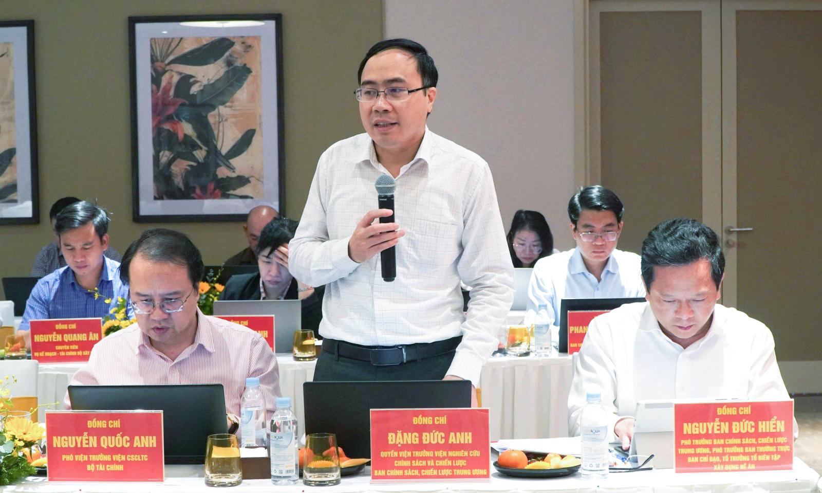 Thành viên đoàn công tác Ban Chính sách, Chiến lược Trung ương phát biểu tại buổi làm việc.