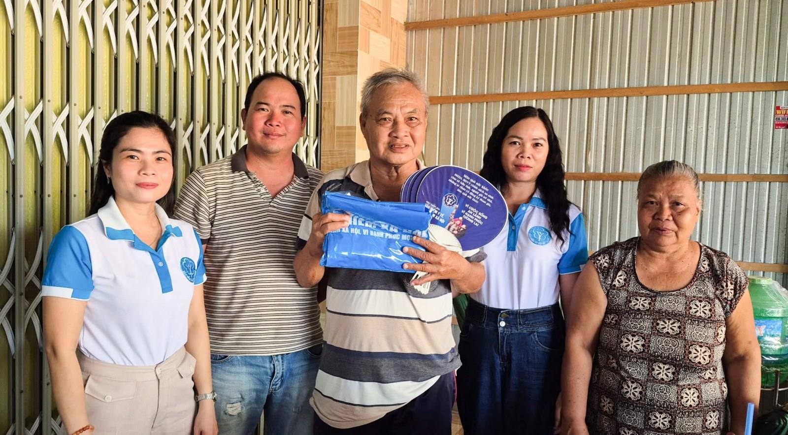 Bảo hiểm xã hội cơ sở Chợ Mới đến thăm gia đình ông Nguyễn Văn Tâm, ngụ ấp Phú Thượng 3, xã Chợ Mới. Ảnh: HẠNH CHÂU