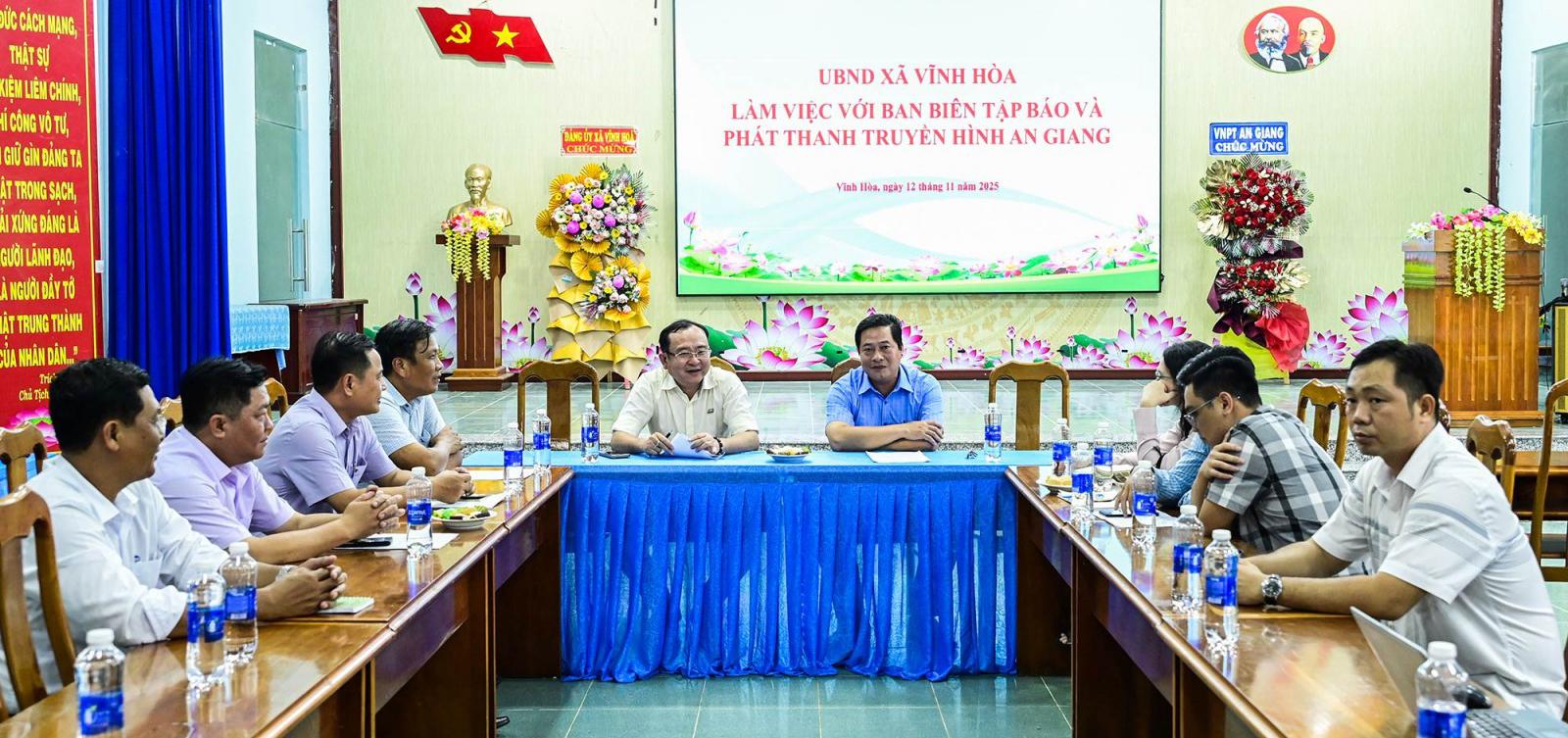 Ngày 12/11, Ban Biên tập Báo và Phát thanh - Truyền hình An Giang tổ chức cho biên tập viên, phóng viên tác nghiệp thực tế tại xã Vĩnh Hòa. Chủ tịch UBND xã Vĩnh Hòa Lại An Nhân tiếp và làm việc với đoàn.