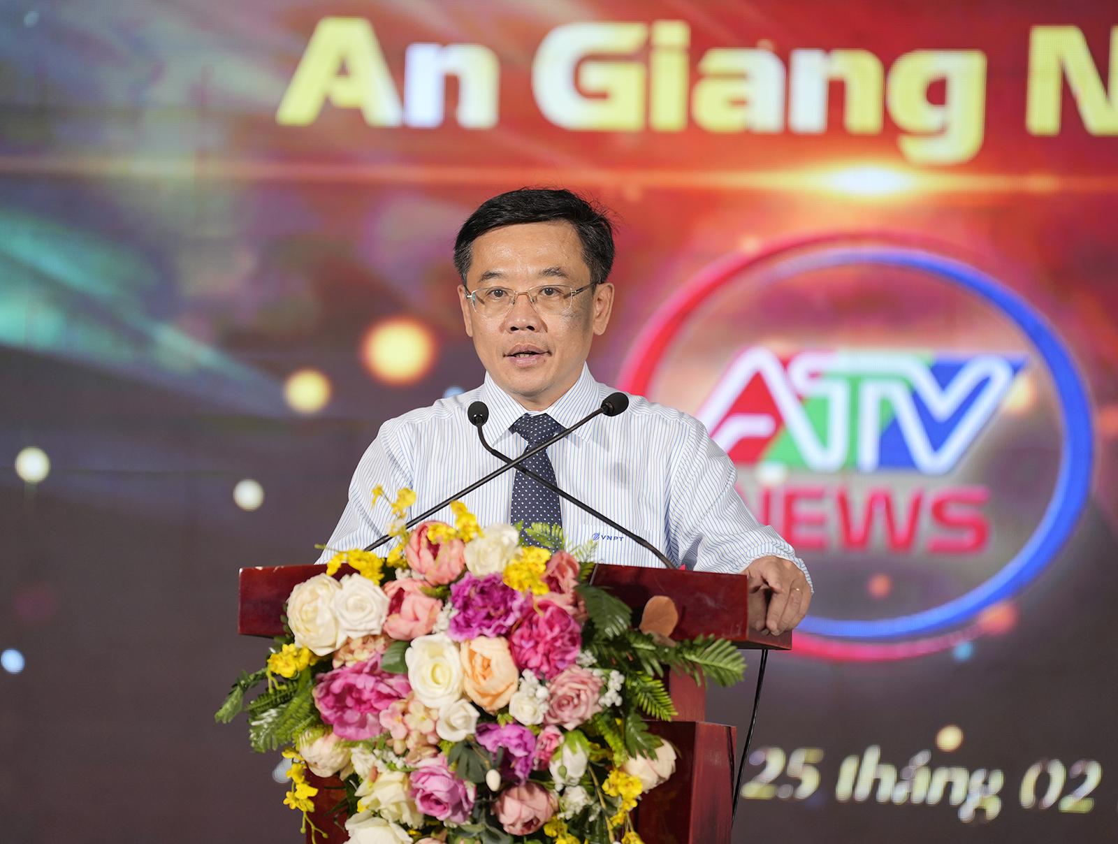Giám đốc VNPT An Giang Trần Thái Tuyên phát biểu chúc mừng tại lễ ra mắt kênh YouTube tiếng Anh “An Giang News”.