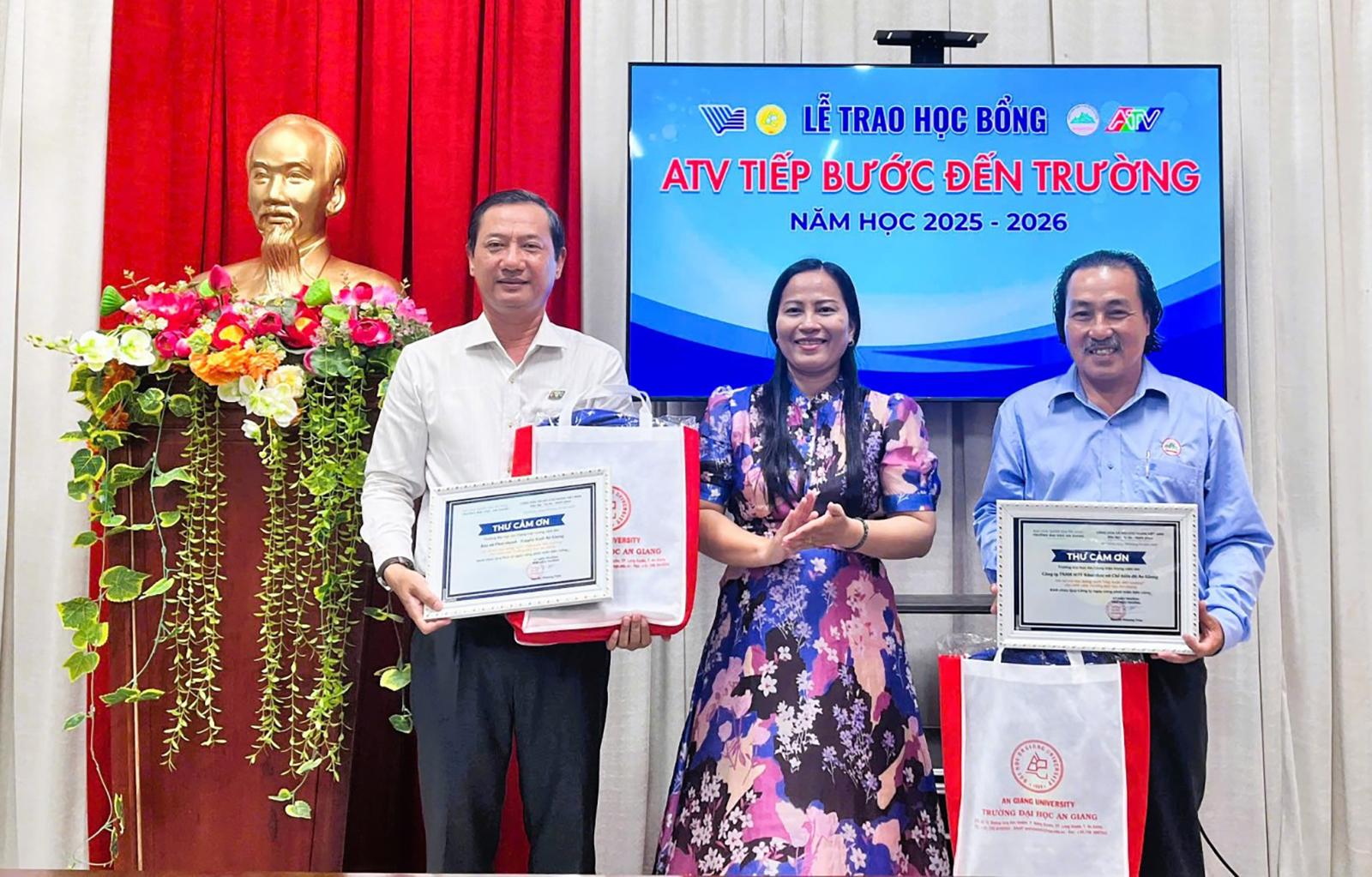Trao học bổng “ATV tiếp bước đến trường” năm 2025 cho sinh viên tiêu biểu Trường Đại học An Giang. Ảnh: Kim Cương.
