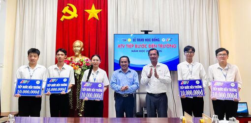 Theo đó, 10 sinh viên tiêu biểu của Trường Đại học An Giang được trao học bổng “ATV tiếp bước đến trường”. Mỗi suất học bổng trị giá 10 triệu đồng do Công ty TNHH Một thành viên Khai thác và Chế biến đá An Giang hỗ trợ, tổng trị giá 100 triệu đồng.
