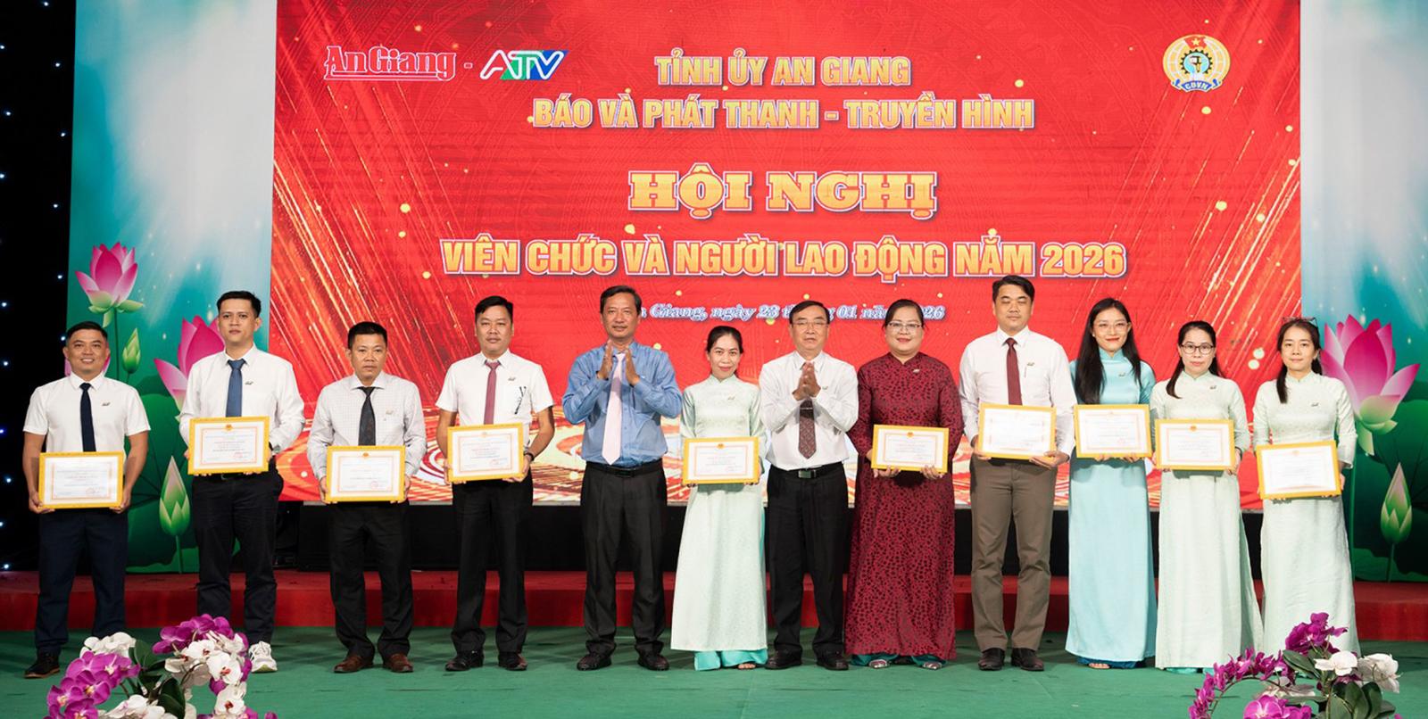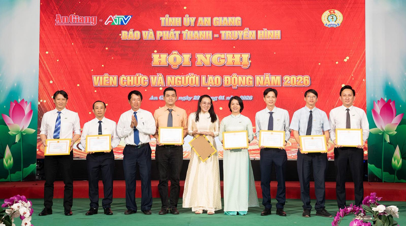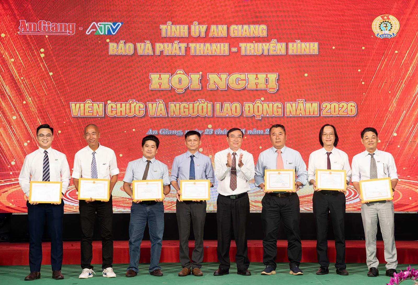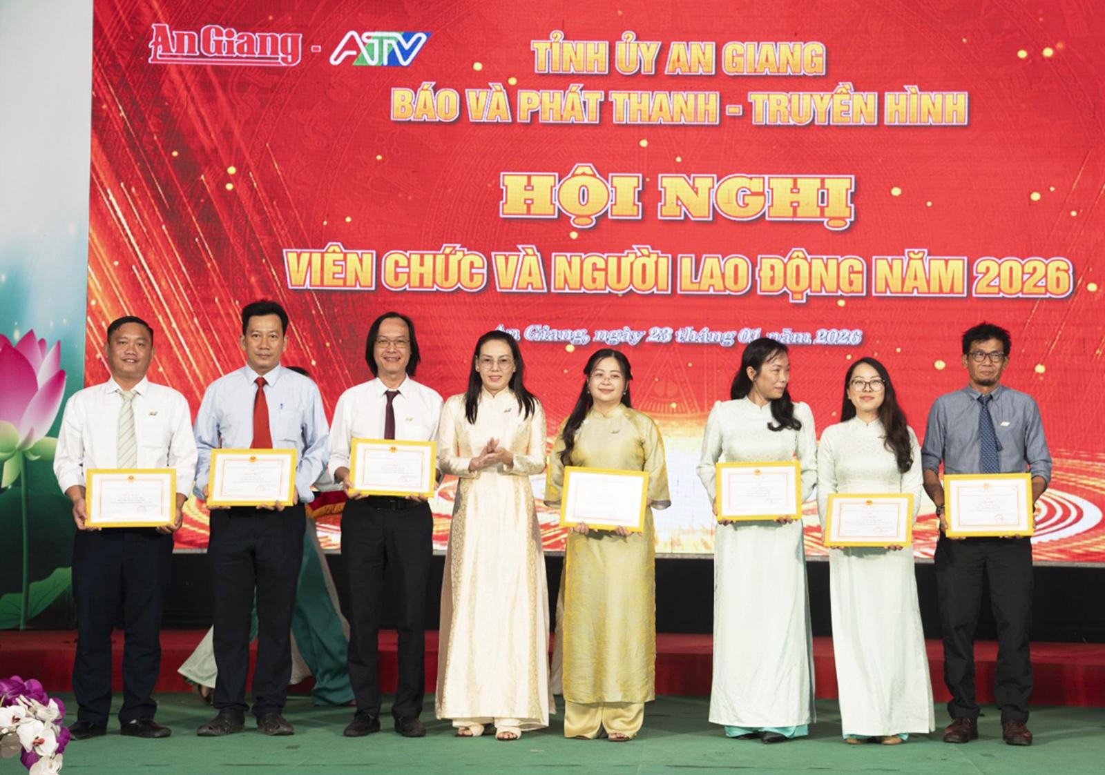 Dịp này, Ban Giám đốc Báo và Phát thanh - Truyền hình tỉnh An Giang trao tặng danh hiệu “Lao động tiên tiến” năm 2025 cho 8 tập thể và 239 cá nhân; danh hiệu “Chiến sĩ thi đua cơ sở” năm 2025 cho 52 cá nhân.