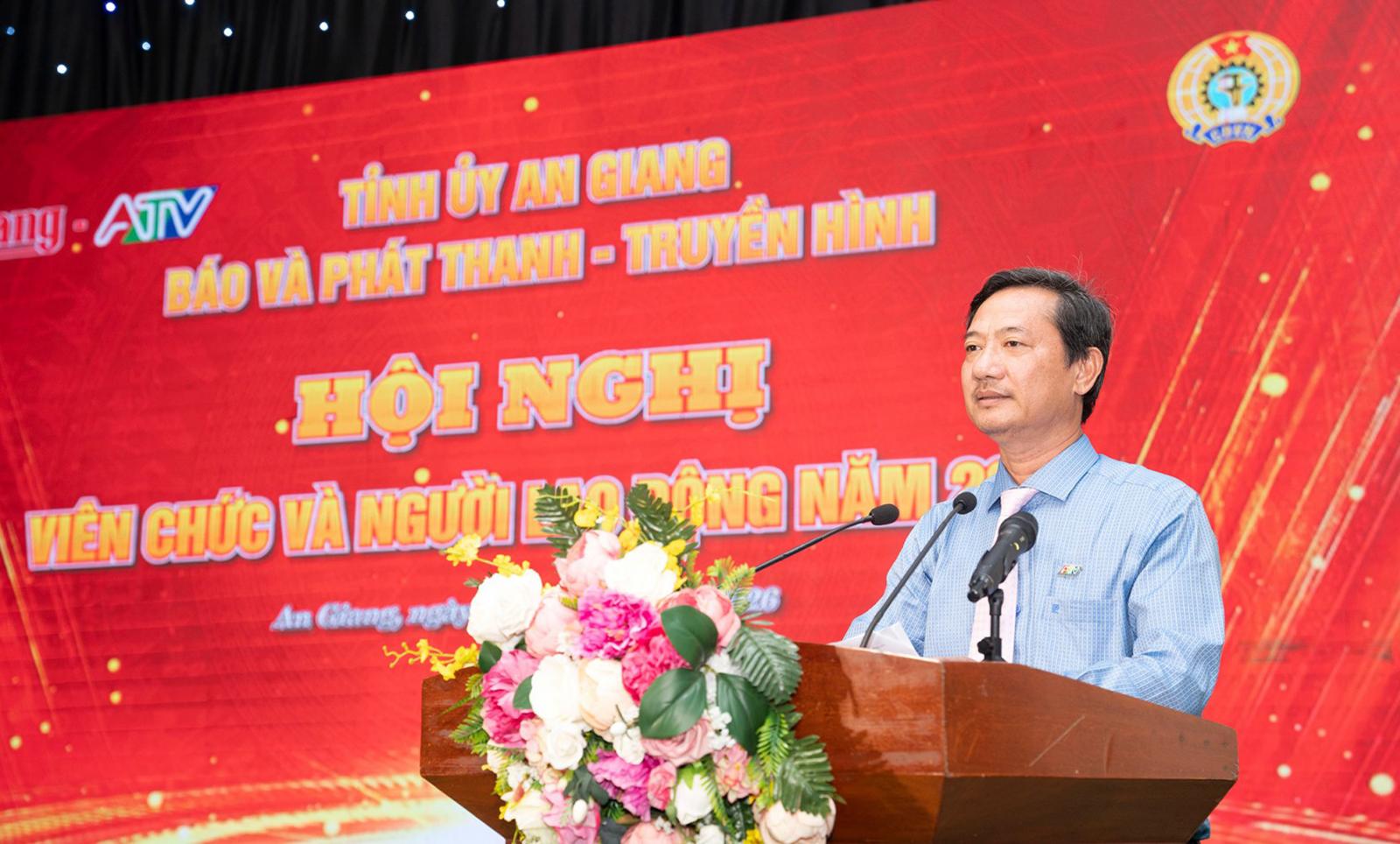 Phó Bí thư phụ trách Đảng ủy, Phó Giám đốc phụ trách Báo và Phát thanh - Truyền hình tỉnh An Giang Lê Văn Chuyển nhấn mạnh: Năm 2026, Báo và Phát thanh - Truyền hình tỉnh An Giang xác định rõ phương châm hành động trong giai đoạn mới là “Chuyển đổi số là trọng tâm - Kinh tế báo chí là then chốt - Đổi mới, nâng cao chất lượng thông tin là nhiệm vụ hàng đầu”, gắn với chủ đề xuyên suốt của nhiệm kỳ: “Đoàn kết, kỷ cương - đổi mới, phát triển”.