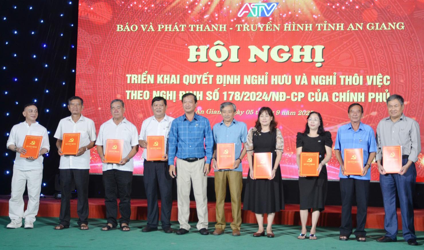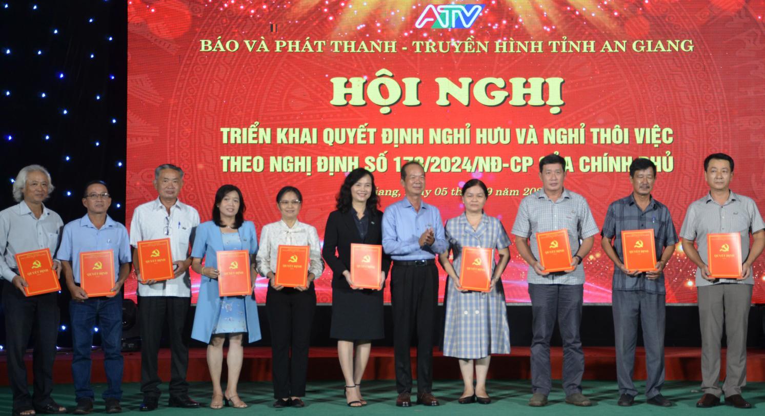 Tại hội nghị, đại diện Phòng Tổ chức - Hành chính và Dịch vụ công bố các quyết định của Ban Biên tập Báo và Phát thanh - Truyền hình tỉnh An Giang về việc nghỉ hưu, nghỉ công tác theo Nghị định 178 và Nghị định 67 của Chính phủ đối với 64 cán bộ, viên chức, người lao động; 5 viên chức nghỉ thôi việc theo nguyện vọng cá nhân.