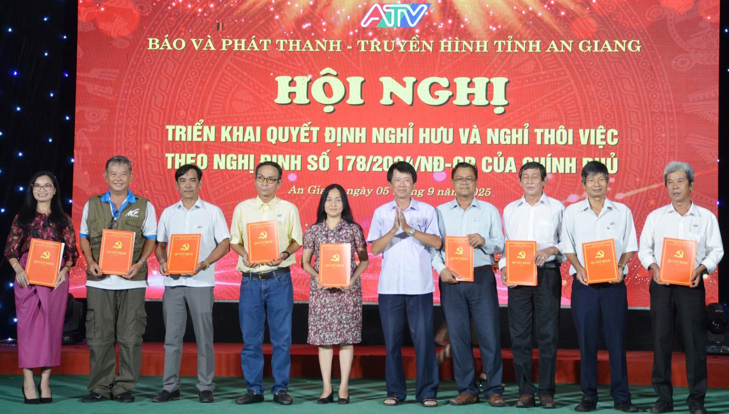 Chiều 5/9, Ban Biên tập Báo và Phát thanh - Truyền hình tỉnh An Giang tổ chức Hội nghị triển khai quyết định nghỉ hưu và nghỉ thôi việc theo Nghị định số 178/2024/NĐ-CP và Nghị định số 67/2025/NĐ-CP của Chính phủ cho viên chức và người lao động của đơn vị.