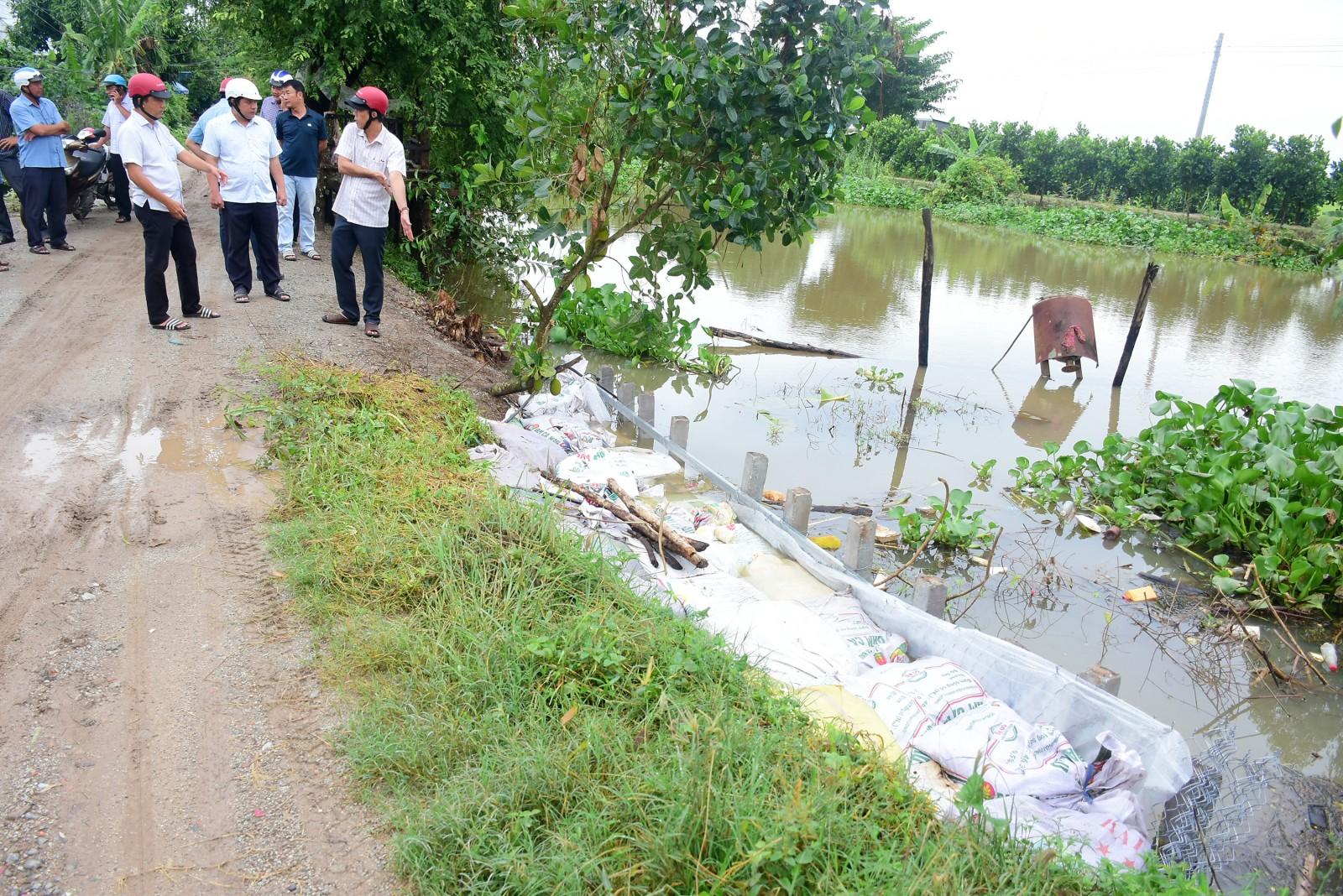 Lãnh đạo xã Thạnh Mỹ Tây yêu cầu thường xuyên kiểm tra các điểm gia cố đê, nhằm xử lý tình huống phát sinh.