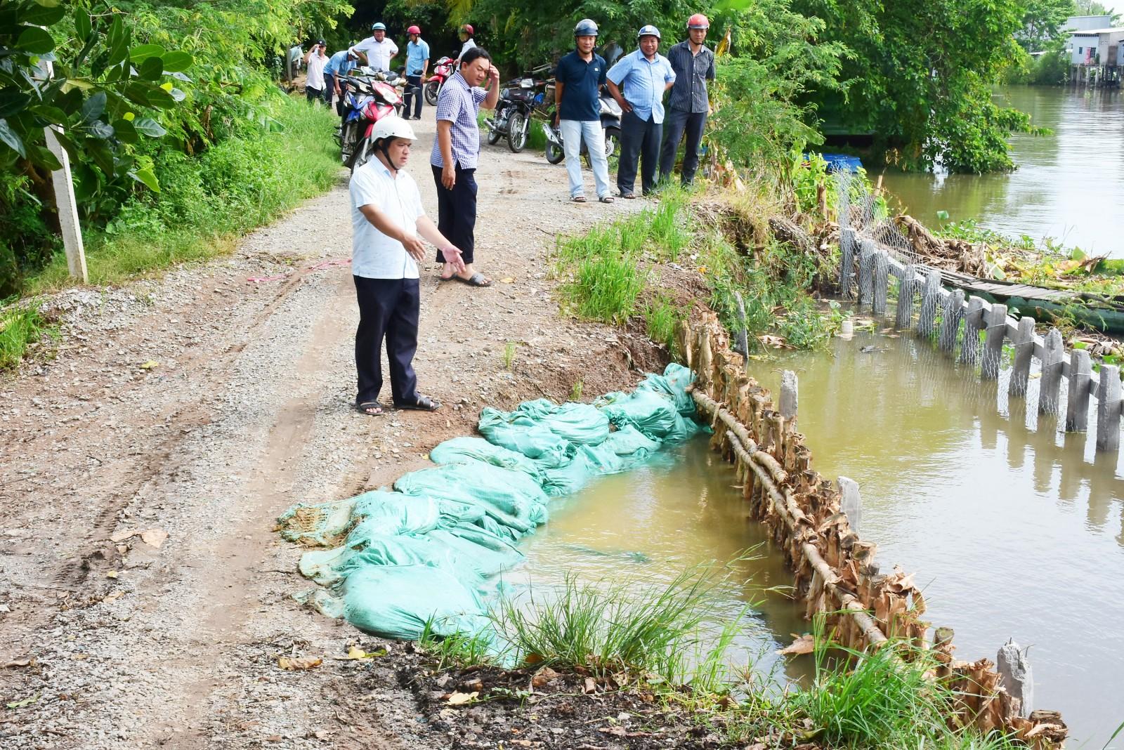 Bí thư Đảng ủy xã Thạnh Mỹ Tây kiểm tra các tuyến đê xung yếu