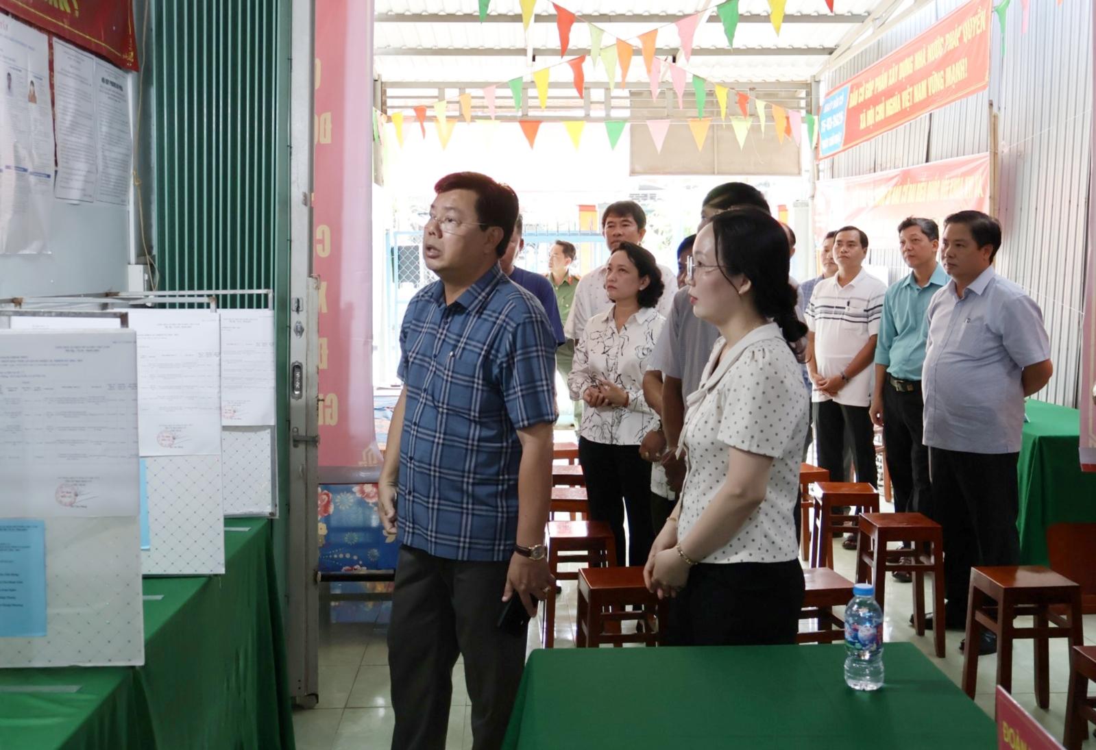 Đoàn kiểm tra công tác bầu cử tại khu vực bỏ phiếu số 2, Văn phòng ấp Mỹ Trung, xã Long Kiến.