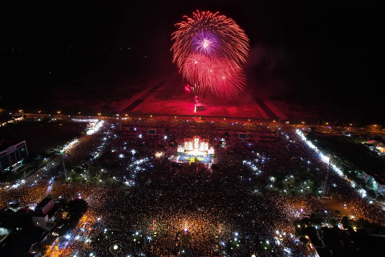 Pháo hoa đêm giao thừa Tết Nguyên đán Bính Ngọ 2026 tại phường Rạch Giá (An Giang).