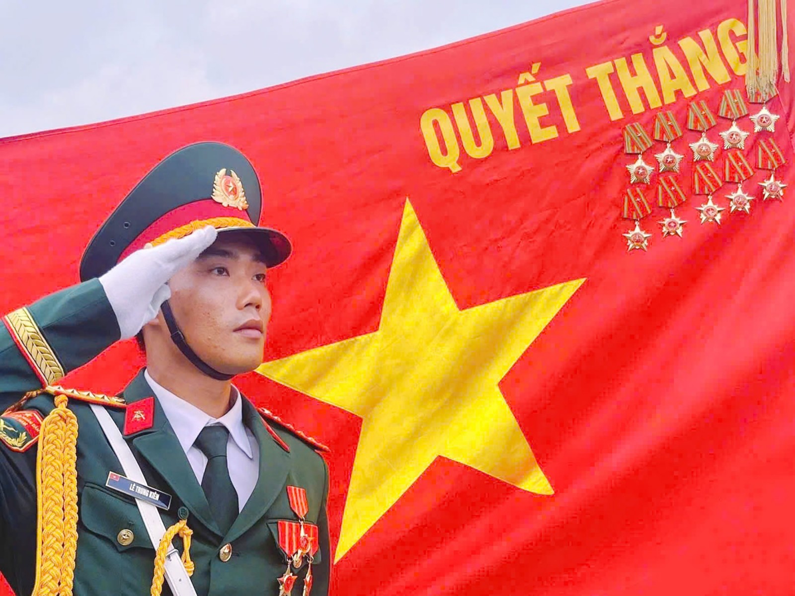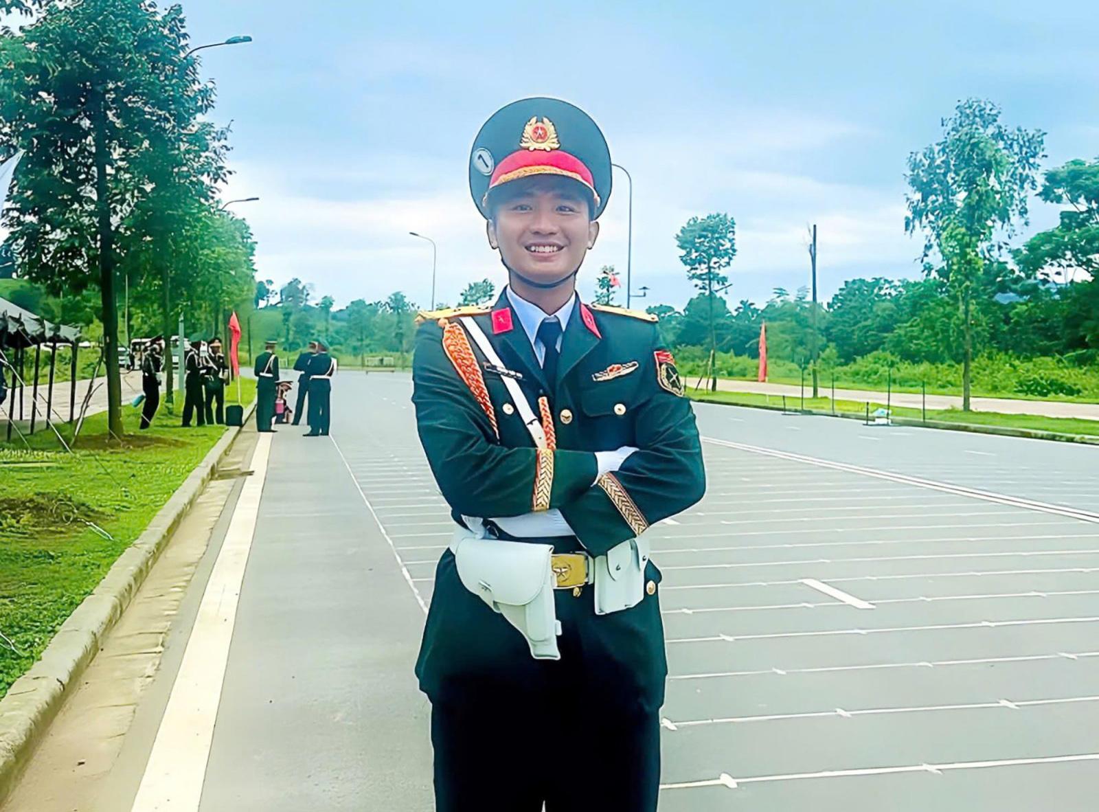Thiếu úy Nguyễn Nhất Huy thuộc Phòng Tham mưu (Bộ Chỉ huy Quân sự tỉnh An Giang) tham gia diễu binh. Ảnh nhân vật cung cấp.