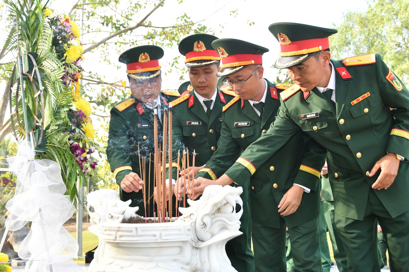 Bộ Chỉ huy Quân sự tỉnh An Giang dâng hoa, dâng hương tại Khu Lưu niệm Lực lượng vũ trang tỉnh (ấp Bờ Dừa, xã Vĩnh Hòa, tỉnh An Giang).
